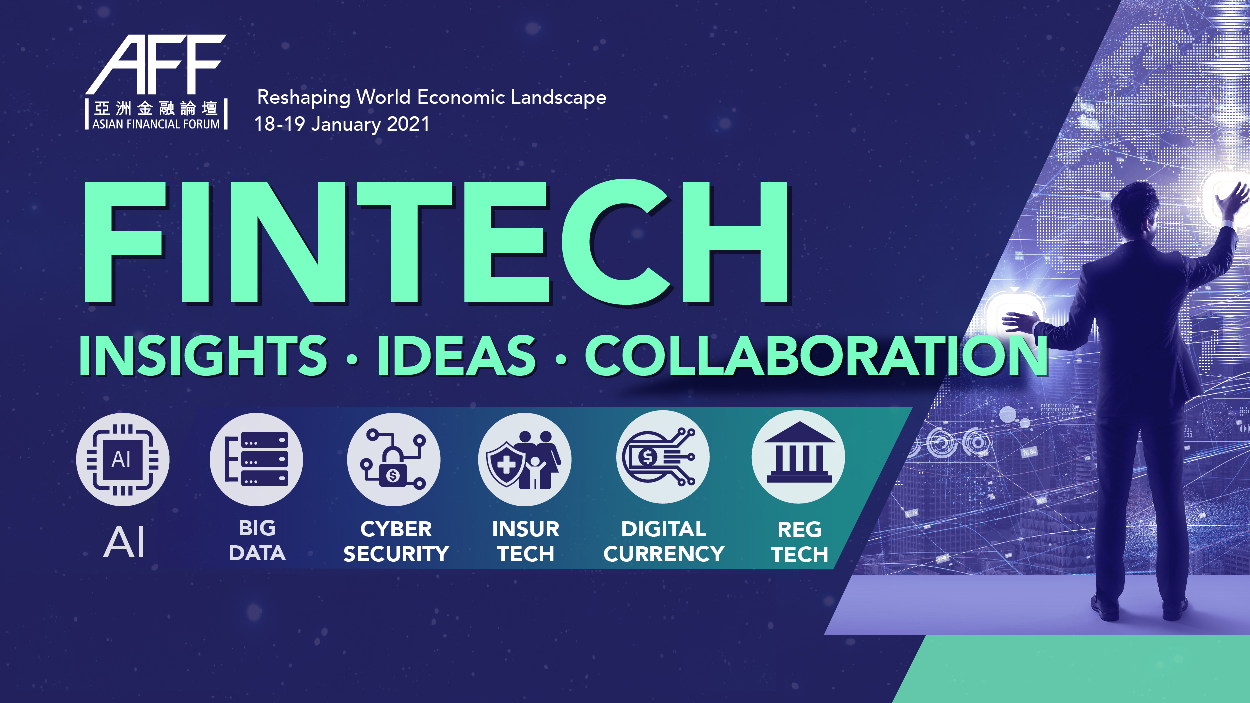 Co-organised by the Hong Kong Special Administrative Region (HKSAR) Government and Hong Kong Trade Development Council (HKTDC), the 14th Asian Financial Forum (AFF) opened today on a virtual platform. Under the theme “Reshaping the World Economic Landscape”, the two-day forum runs round the clock across different time zones, examining the current economic landscape and exploring global business opportunities with more than 160 influential policymakers, financial experts, investors, business leaders and economists.