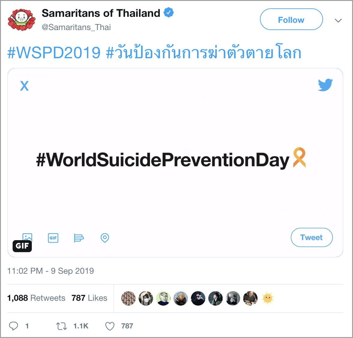 As part of this partnership, Twitter is also providing @Samaritans_Thai with #AdsForGood grants to help them reach more people.