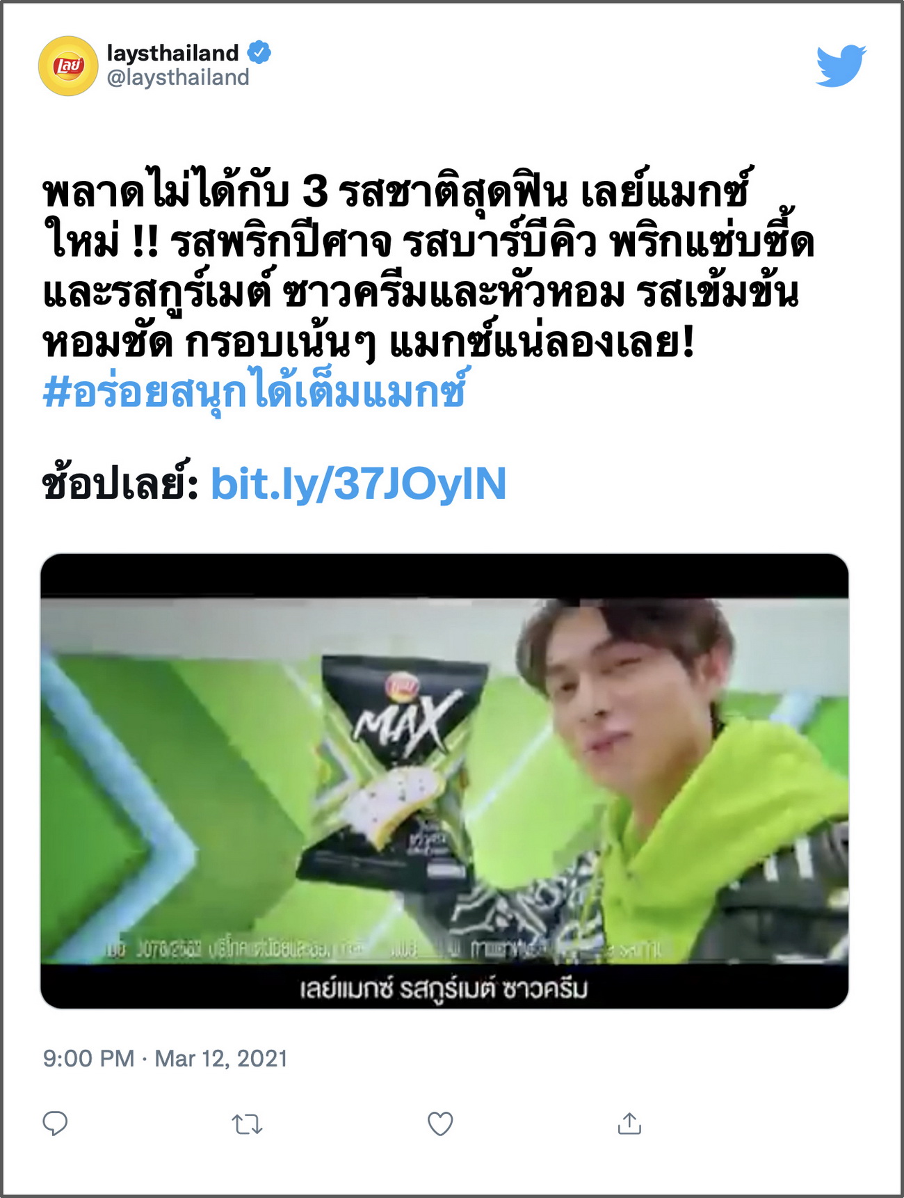 Embeddable Tweet: https://twitter.com/laysthailand/status/1370358925049090048