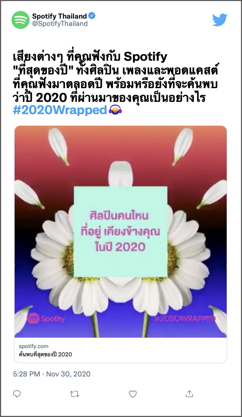 Embeddable Tweet: https://twitter.com/SpotifyThailand/status/1333342042865369089
