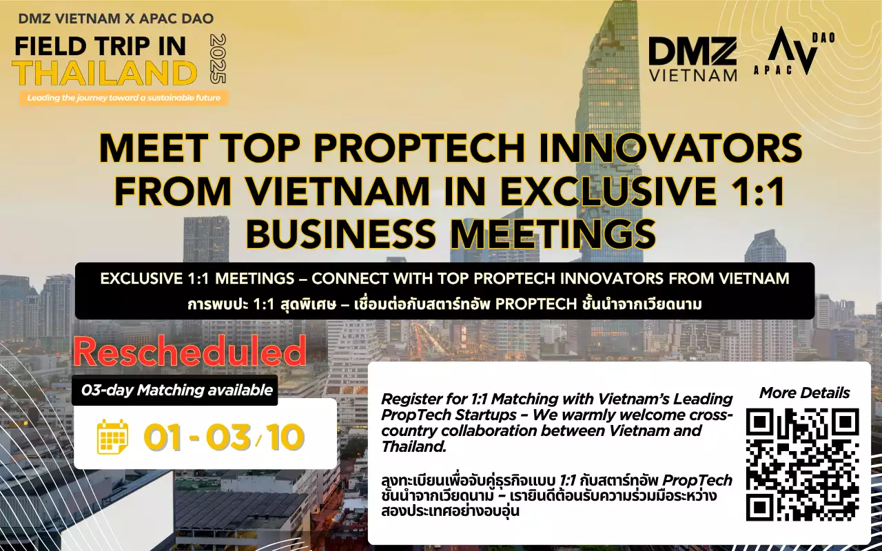 The Vietnam PropTech delegation’s visit to Thailand has been rescheduled. Instead of September 15–17, the new dates are now October 1–3, 2025.