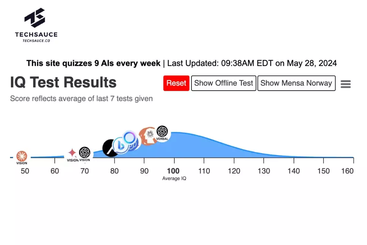 ผลทดสอบ IQ ของ AI ในแบบทดสอบ Mensa เมื่อวันที่ 28 พฤษภาคม 2024