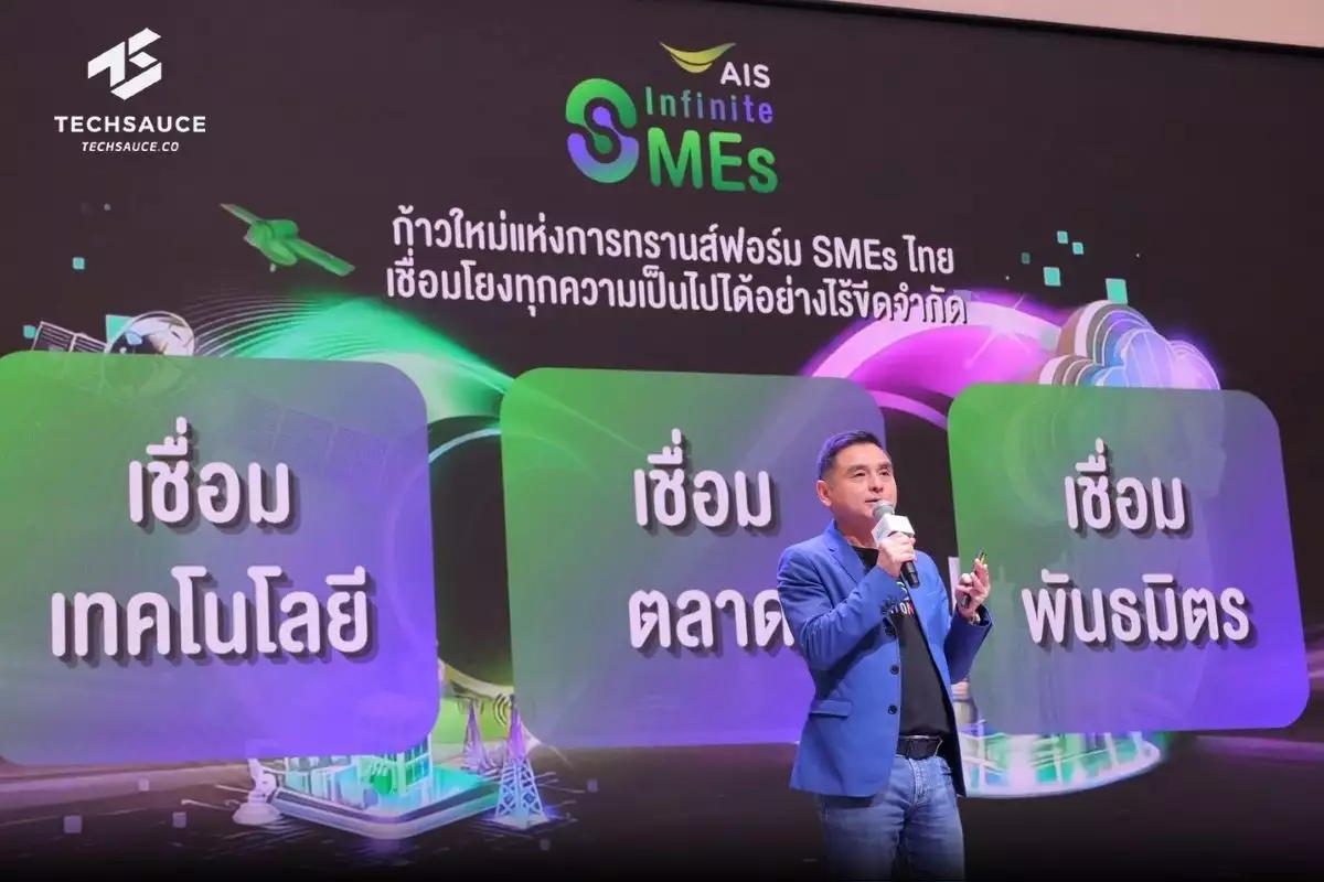 AIS เปิดตัว “AIS Infinite SMEs” ก้าวใหม่แห่งความร่วมมือในการทรานส์ฟอร์มธุรกิจ Startup และ SMEs ไทยให้เชื่อมต่อทุกความเป็นไปได้ ผ่านกลยุทธ์ “3 ส” เพื่อเสริม สร้าง และพาผู้ประกอบไทยสยายปีกอย่างแข็งแกร่งในทุกมิติ ด้วยองค์ความรู้และโซลูชันอัจฉริยะ ขยายโอกาสการสร้างพันธมิตรทั้งภาครัฐ เอกชน และเครือข่ายระดับโลก ผ่านหลักสูตรเฉพาะสำหรับผู้ประกอบการ เพื่อส่งเสริมทักษะและสร้างการเติบโตอย่างมั่นคง พร้อมผลักดัน SMEs ไทยสู่มาตรฐานระดับสากล เดินหน้าขับเคลื่อนเศรษฐกิจไทยให้เติบโตอย่างไร้ขีดจำกัดไปด้วยกันอย่างยั่งยืน