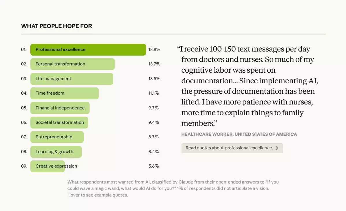 Anthropic จึงตัดสินใจทำโปรเจกต์ที่อาจเรียกได้ว่าเป็น “การฟังเสียงมนุษย์” ครั้งใหญ่ที่สุดผ่าน Anthropic Interviewer โดยใช้ Claude เข้าไปนั่งคุยแบบ Deep Interview กับผู้ใช้งานกว่า 80,508 คน จาก 159 ประเทศ เพื่อหาคำตอบว่า ท่ามกลางกระแสธารของเทคโนโลยี... ความหวังและความกลัวของคนจริง ๆ ต่อเทคโนโลยีนี้คืออะไรกันแน่