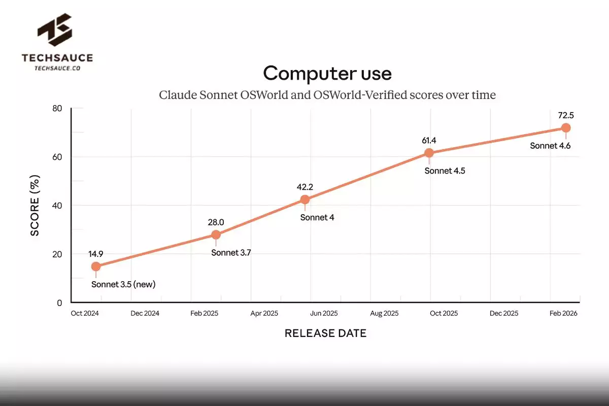 Anthropic ตอกย้ำความเป็นผู้นำด้าน Agentic Workflow ด้วยการอัปเกรดความสามารถ Computer Use ให้ก้าวข้ามขีดจำกัดเดิม ๆ ผลทดสอบ OSWorld พบว่า Sonnet 4.6 ทำคะแนนทุบสถิติโลกในการสั่งการคอมพิวเตอร์จำลอง ไม่ว่าจะเป็นการเปิด Chrome, ใช้ LibreOffice หรือเขียนโค้ดใน VS Code
