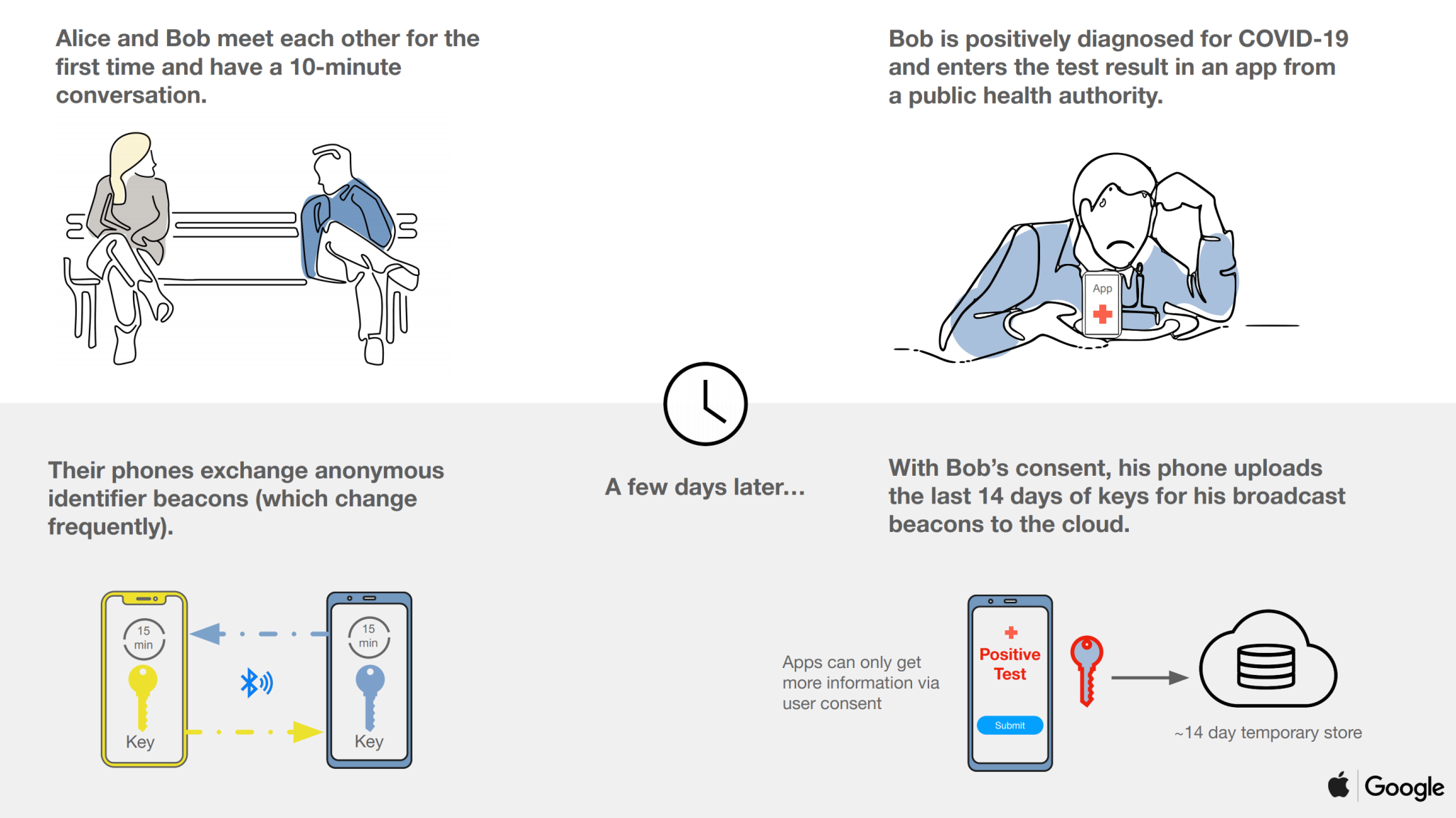 ในเดือนพฤษภาคมที่จะถึงนี้ ทั้ง 2 บริษัท จะปล่อย API ที่ทำงานร่วมกันระหว่างอุปกรณ์ Android และ iOS ซึ่งจะอนุญาตให้แอปพลิเคชันจากภาคสาธารณสุขสามารถติดตามผู้ใช้งานได้