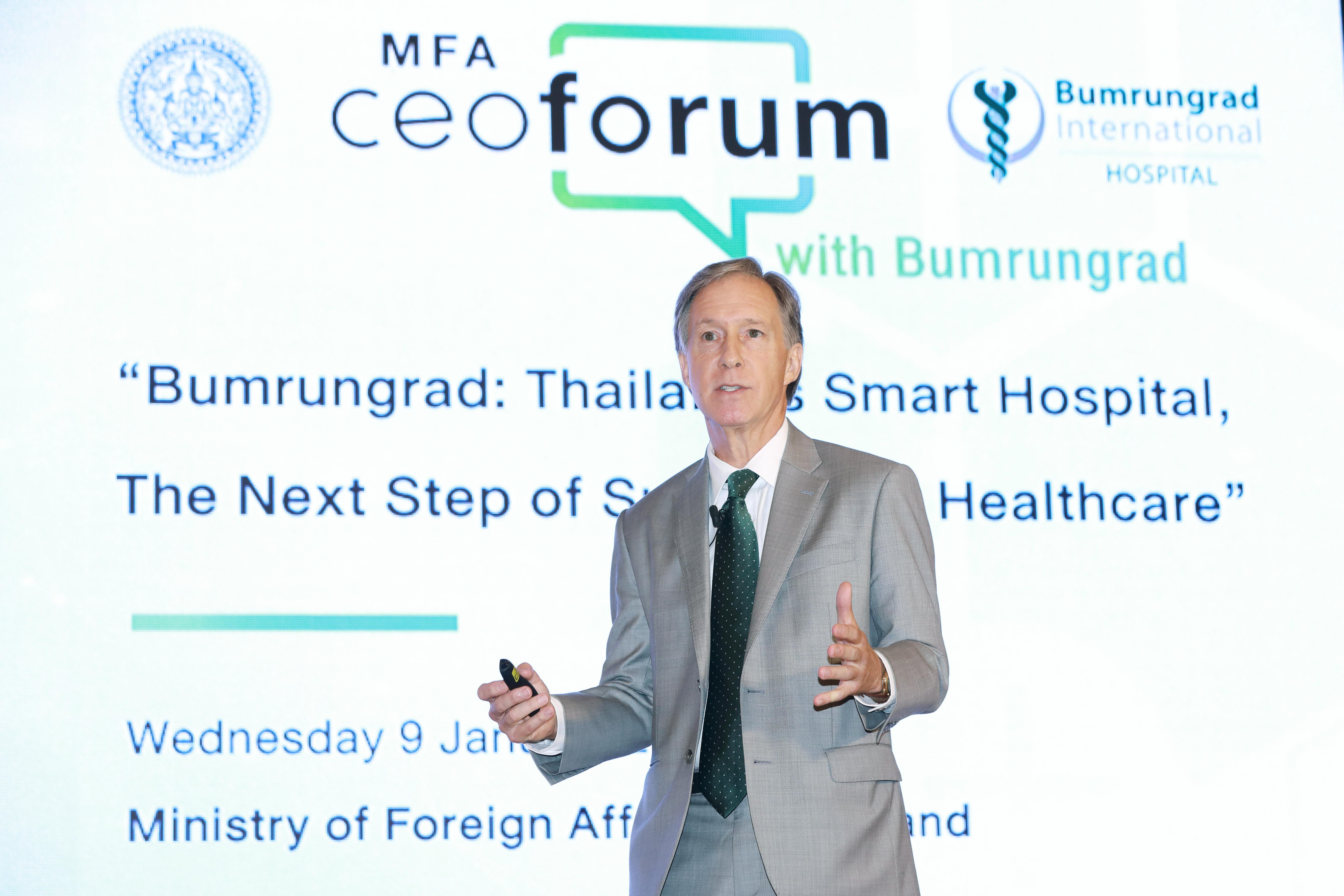 ประเทศไทย ถือเป็นหนึ่งในจุดหมายปลายทางสำคัญของนักท่องเที่ยวทั่วโลก และเป็นจุดหมายของการท่องเที่ยวเชิงสุขภาพ โดยสื่อจากสำนักข่าวต่างประเทศมากมายได้ตีพิมพ์บทความการจัดอันดับประเทศที่มีประสิทธิภาพในด้าน Healthcare ซึ่งไทยอยู่ในลำดับที่ 14 ของโลกและยังถือเป็นธุรกิจที่กำลังเติบโตอย่างรวดเร็ว มร. เดวิด โธมัส บูเช ผู้อำนวยการด้านบิสซิเนสทรานส์ฟอร์มเมชั่น (Chief Business Transformation Officer) โรงพยาบาลบำรุงราษฎร์ ได้กล่าวในงานสัมมนา “MFA CEO Forum with Bumrungrad” หัวข้อ “Thailand’s Smart Hospital: The Next Step of Sustainable Healthcare” จัดโดยกรมเศรษฐกิจระหว่างประเทศ กระทรวงการต่างประเทศ เพื่อแสดงวิสัยทัศน์ด้าน Smart Hospital และเพื่อยกระดับบทบาทของเอกชนไทยในเวทีเศรษฐกิจโลก โดยมีเอกอัครราชทูตต่างประเทศที่ประจำการในประเทศไทย ตลอดจนผู้บริหารในภาคธุรกิจชั้นนำเข้าร่วม