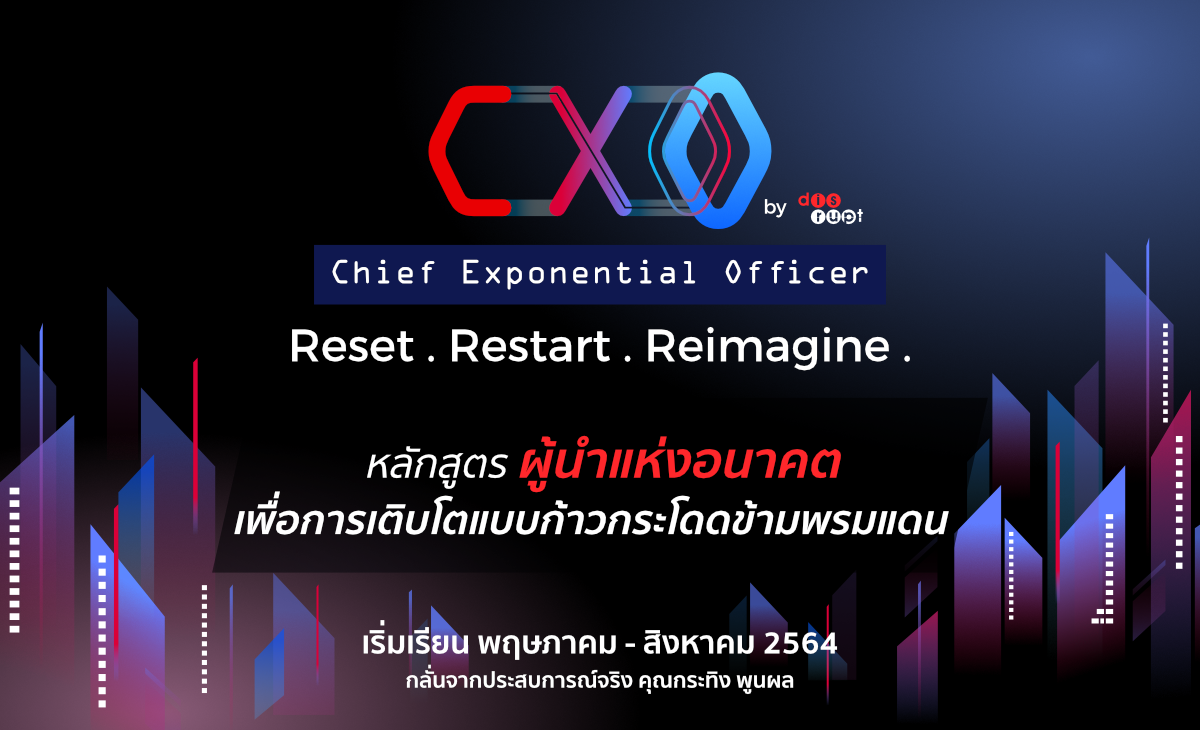 ดิสรัปท์ เทคโนโลยี เวนเจอร์ ผู้บุกเบิกและพัฒนาวงการสตาร์ทอัพไทย ประกาศเปิดตัวหลักสูตร CXO - Chief Exponential Officer หลักสูตรสำหรับผู้บริหารระดับสูงที่ต้องการ transform องค์กรให้เป็น Exponential Organization ออกแบบและดำเนินการสอนหลักโดยคุณกระทิง พูนผล Founding Partner กองทุน 500 TukTuks และ President of Technology ธนาคารกสิกรไทย