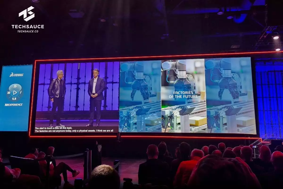 Jensen Huang ย้อนความหลังว่าความร่วมมือระหว่าง NVIDIA และ Dassult Systèmes เริ่มขึ้นตั้งแต่ยุคที่โลกคอมพิวเตอร์กำลังเปลี่ยนผ่านจากการใช้ Unix Workstation มาเป็น Windows ในตอนนั้น NVIDIA เป็นผู้บุกเบิกเทคโนโลยีอย่าง OpenGL และร่วมกันสร้างนวัตกรรมที่ชื่อว่า CGFX ซึ่งในเวลาต่อมามันได้วิวัฒนาการกลายเป็น CUDA ขุมพลังเบื้องหลัง AI ที่คนทั้งโลกใช้กันอยู่ในปัจจุบัน