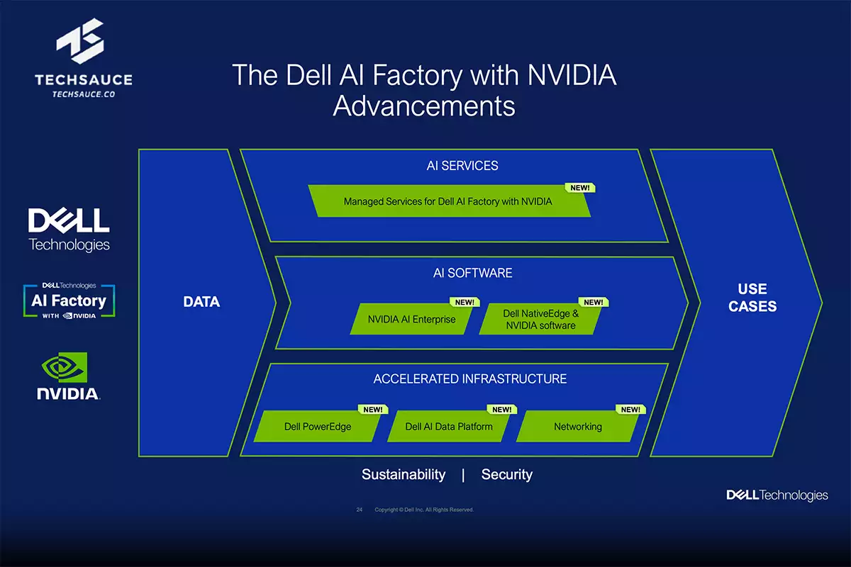 การประกาศนวัตกรรมใหม่นี้ครอบคลุม 'Dell AI Factory with NVIDIA' หรือ นวัตกรรมใหม่ที่ Dell AI Factory ร่วมกับ NVIDIA นำเสนอโซลูชัน AI รุ่นใหม่มายกระดับประสิทธิภาพการประมวลผลข้อมูลด้วยความเร็วสูง เพื่อช่วยให้องค์กรระดับ Enterprise ดำเนินงานได้คล่องตัวยิ่งขึ้น และได้ผลลัพธ์รวดเร็วขึ้นในทุกขั้นตอนของการใช้งาน AI