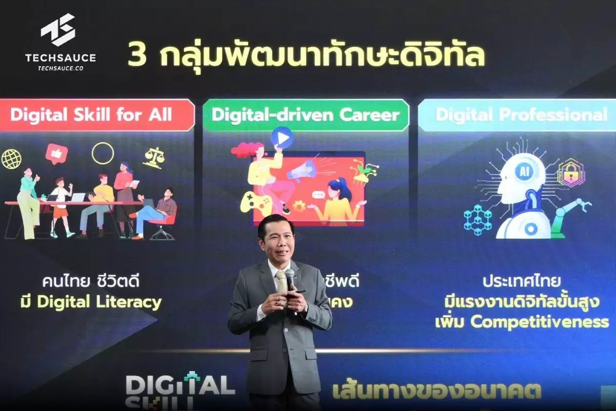 ทั้งนี้ ภายในงานยังมีการเสวนาในหัวข้อ ‘Skill Matters: ทักษะดิจิทัลที่โลกต้องการ คนไทยต้องมี’ โดยผู้บริหารจากบริษัทเทคโนโลยีระดับโลก ได้แก่ คุณสุภารัตน์ จูระมงคล ผู้อำนวยการ การพัฒนาทักษะเอไอ บริษัท ไมโครซอฟท์ (ประเทศไทย) จำกัด และ คุณวารุณี รัชตพัฒนากุล หัวหน้าฝ่ายนโยบายสาธารณะ เอเชียแปซิฟิกและญี่ปุ่น บริษัท SAP พร้อมด้วยผู้บริหารจากบริษัทเทคโนโลยีชั้นนำในประเทศ ได้แก่ คุณอรนุช เลิศสุวรรณกิจ ประธานเจ้าหน้าที่บริหารและผู้ร่วมก่อตั้ง บริษัท เทคซอส มีเดีย จำกัด และ คุณโอชวิน จิรโสตติกุล ประธานเจ้าหน้าที่บริหารและผู้ก่อตั้ง FutureSkill รวมถึงการบรรยาย ‘เจาะลึกสิทธิประโยชน์ทางภาษีตามกรอบ Digital Skill Roadmap’ โดยคุณกัสภณ สิงห์ประเสริฐ นักวิชาการภาษี ชำนาญการพิเศษ กรมสรรพากร