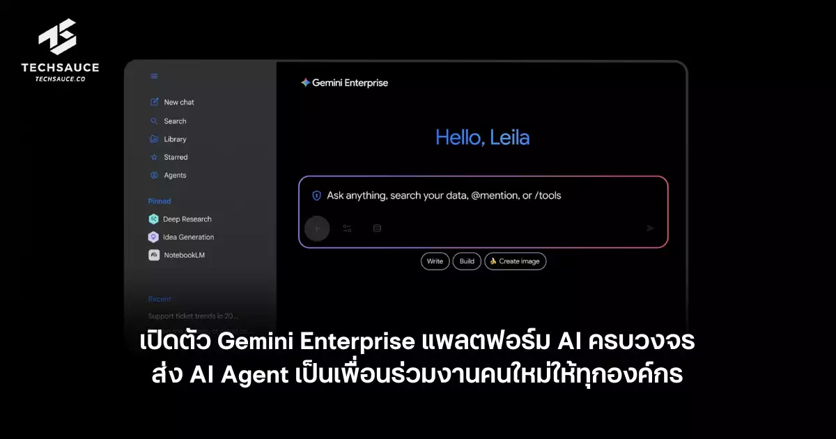 Google Cloud ได้ประกาศเปิดตัว Gemini Enterprise แพลตฟอร์ม Agentic AI ที่ครบวงจรและบูรณาการที่สุดในอุตสาหกรรม ซึ่งจะทำหน้าที่เป็นประตูบานแรกสู่โลก AI สำหรับพนักงานทุกคนในองค์กร โดยเชื่อมต่อเข้ากับข้อมูลและกระบวนการทำงานต่างๆ เพื่อสั่งการ AI Agent หรือผู้ช่วยอัจฉริยะให้ทำงานที่ซับซ้อนหลายขั้นตอนได้โดยอัตโนมัติ