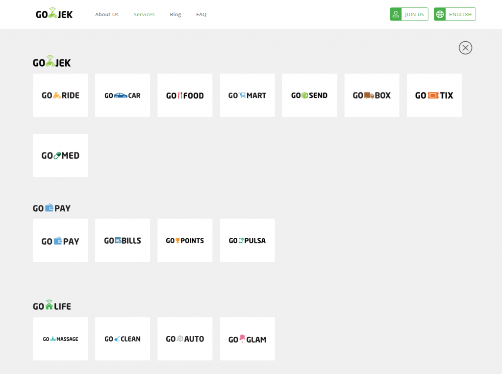 บริการอื่นๆ ของ Go-Jek นอกจากเหนือจากบริการเรียกแท็กซี่หรือมอเตอร์ไซค์ผ่านแอป ซึ่งตอนนี้ (พฤษภาคม 2018) มีบริการมากถึง 16 บริการ | Photo: Go-Jekซึ่ง Go-Jek มีแบ็คคนสำคัญที่สนับสนุนด้านเงินทุนอย่าง Warburg Pincus และ KKR & Co. ทำให้ Go-Jek ขยายบริการจากเดิมมีแค่บริการเรียกแท็กซี่หรือมอเตอร์ไซค์ ทำให้สามารถขยายบริการจ่ายเงิน สั่งอาหาร หรือซื้อตั๋วหนังรายใหญ่ใน Southeast Asia ได้ในที่สุด โดยการระดมทุนของ Go-Jek รอบล่าสุดมีนักลงทุนจาก Google, Tencent และ Temasek Holdings เข้ามาร่วมด้วย จนในปี 2016 Go-Jek มีมูลค่าบริษัทอยู่ที่ประมาณ 1.8 พันล้านดอลาาร์สหรัฐฯ อ้างอิงข้อมูลจาก CB Insights