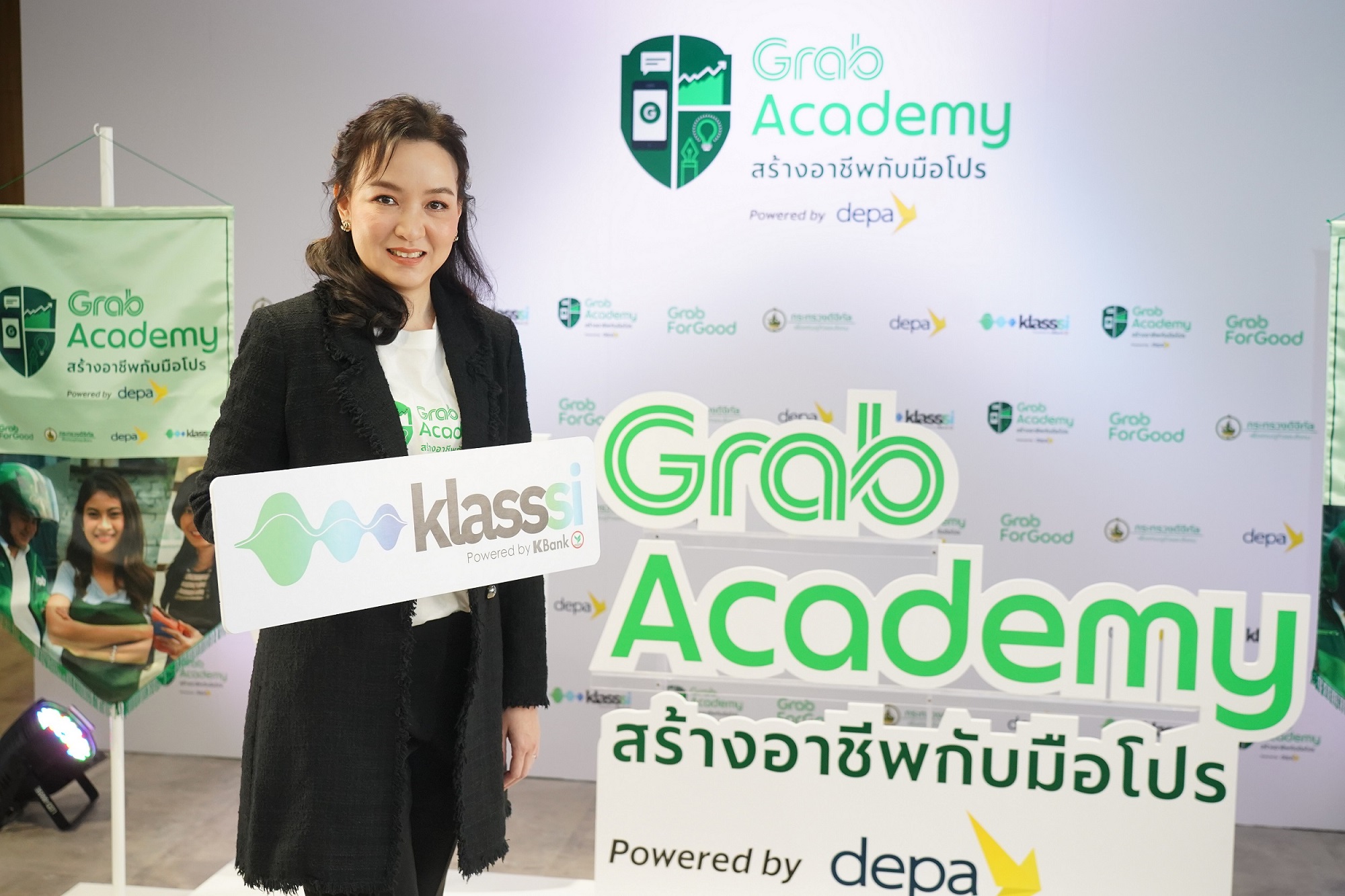 คุณหทัยพร เจียมประเสริฐ ผู้ช่วยกรรมการผู้จัดการ ธนาคารกสิกรไทย เผยว่า “Klasssi (คลาส-ซี่) แพลตฟอร์มการเรียนรู้ของธนาคารกสิกรไทย มีเป้าหมายเพื่อขยายโอกาสการเข้าถึงความรู้ และมุ่งหวังยกระดับคุณภาพทักษะความสามารถให้แก่สังคม สอดคล้องกับวัตถุประสงค์ของธนาคารที่ต้องการเพิ่มอำนาจให้ทุกชีวิตและธุรกิจของลูกค้า ซึ่งรวมไปถึงในมุมของการสร้างความรู้ ทักษะ ที่สำคัญ เพื่อเป็นอีกฟันเฟืองในการส่งเสริมและสนับสนุนด้านการพัฒนาเศรษฐกิจดิจิทัล โดย Klasssi ในฐานะแพลตฟอร์มคอร์สเรียนออนไลน์ ที่ออกแบบให้สอดคล้องกับไลฟ์สไตล์ของคนรุ่นใหม่ที่เป็น Digital Native มีจุดประสงค์ในการสร้างการเข้าถึงความรู้ได้ทุกที่ ทุกเวลา ผ่านช่องทางออนไลน์อย่างเว็บไซต์และแอปพลิเคชั่นของ Klasssi โดยเน้นไปที่ทักษะจำเป็นในปัจจุบันและอนาคตอย่าง Business Technology และ Human Skill สำหรับตลาดเศรษฐกิจ ซึ่งถือเป็นหนึ่งในความเชี่ยวชาญของธนาคารกสิกรไทย ดังที่จะเห็นได้ว่า ในยุค New-Normal พฤติกรรมของผู้บริโภคได้เปลี่ยนแปลงไปอย่างรวดเร็วกว่าที่เคย ทำให้ผู้ประกอบการและแรงงานต้องปรับตัวให้รวดเร็วยิ่งขึ้น เพื่อเข้าถึงทุกช่วงเวลาของผู้บริโภค ซึ่ง Klasssi มุ่งมั่นที่จะเป็นแหล่งการเรียนรู้ที่ถูกพัฒนาจากความต้องการที่เกิดขึ้นจริงในตลาดเศรษฐกิจ การสร้างความรู้และทักษะใหม่ เพื่อส่งเสริมทักษะวิชาชีพ เพิ่มศักยภาพการทำธุรกิจและสร้างระบบการแบ่งปันความรู้อย่างทั่วถึงจึงได้เกิดเป็นความร่วมมือในโครงการ GrabAcademy powered by depa สร้างอาชีพกับมือโปร ขึ้นมาเพื่อเพิ่มการเข้าถึงองค์ความรู้ในวงกว้าง”