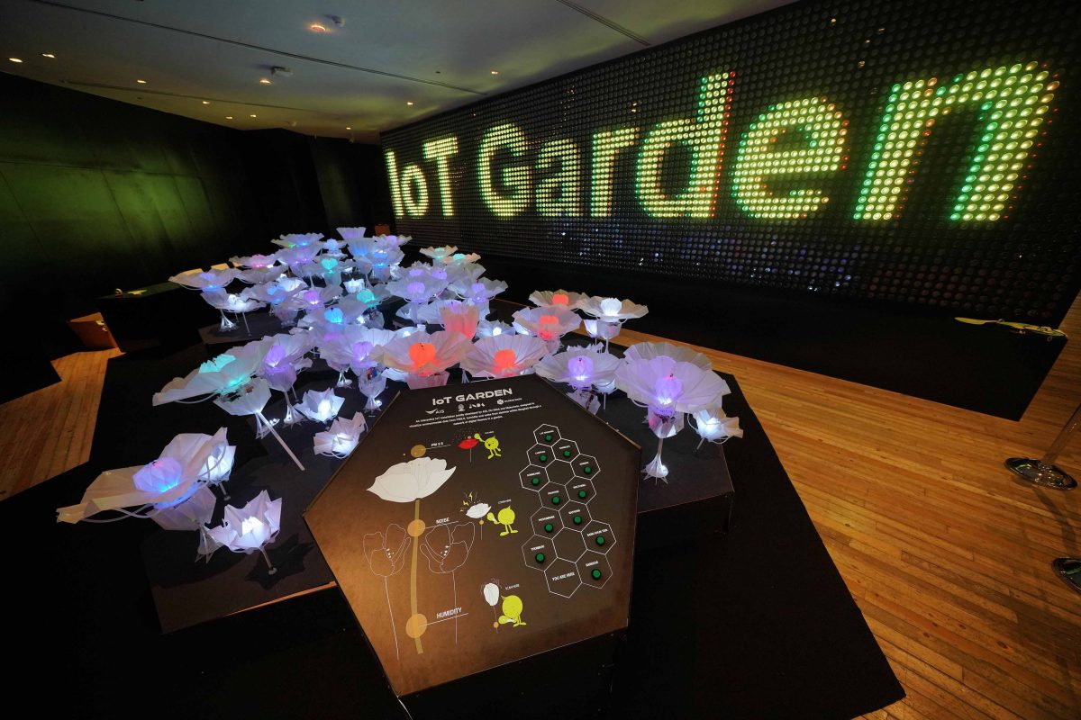 IoT Garden สวนดอกไม้ดิจิทัลเป็นการนำข้อมูล IoT (Internet of Things) ที่ได้จากการวัดค่าความชื้น ค่า PM 2.5 และค่าความถี่เสียงต่างๆ จาก 12 เขตในกรุงเทพฯ มาออกแบบและนำเสนอในรูปแบบของสวนดอกไม้ดิจิทัล ที่สามารถปฏิสัมพันธ์โต้ตอบได้ ผ่านการเปลี่ยนสี การหุบบานของดอก และเสียงของธรรมชาติต่างๆ