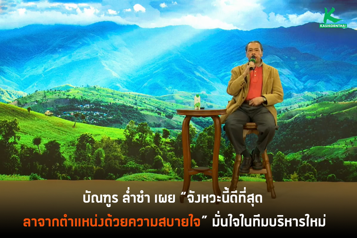 คุณบัณฑูร ล่ำซำ อดีตประธานกรรมการ และ CEO ธนาคารกสิกรไทย ได้เปิดเผยความรู้สึกหลังลงจากตำแหน่งครั้งแรก พร้อมเชื่อมั่นในทีมบริหารใหม่ ซึ่งได้ส่งไม้ต่อให้กับ คุณกอบกาญจน์ วัฒนวรางกูร และคุณขัตติยา อินทรวิชัย