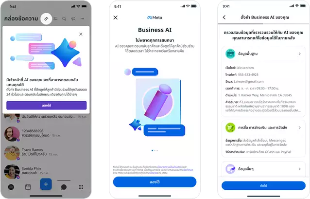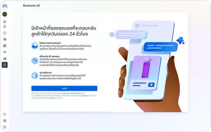 ปัญหาคลาสสิกของคนทำธุรกิจออนไลน์คือการพลาดโอกาสทางการขายในช่วงที่ร้านปิด หรือแอดมินตอบแชทไม่ทัน ฟีเจอร์ Business AI ถูกพัฒนาขึ้นมาเพื่ออุดช่องโหว่นี้ โดย AI จะทำหน้าที่เสมือนพนักงานที่สแตนด์บายตลอด 24 ชั่วโมง ความน่าสนใจคือระบบไม่ได้ทำงานแบบบอทถาม-ตอบธรรมดา แต่สามารถเรียนรู้ข้อมูลของธุรกิจที่มีอยู่แล้วบนแพลตฟอร์ม Meta เช่น โพสต์บนหน้าเพจ แคตตาล็อกสินค้า และเนื้อหาบนเว็บไซต์ ทำให้ AI สามารถตอบคำถาม แนะนำสินค้า ไปจนถึงช่วยประคองลูกค้าให้ไปสู่การตัดสินใจซื้อได้ ทำให้เจ้าของธุรกิจมีเวลาไปโฟกัสกับการบริหารงานส่วนอื่นๆ ได้มากขึ้น