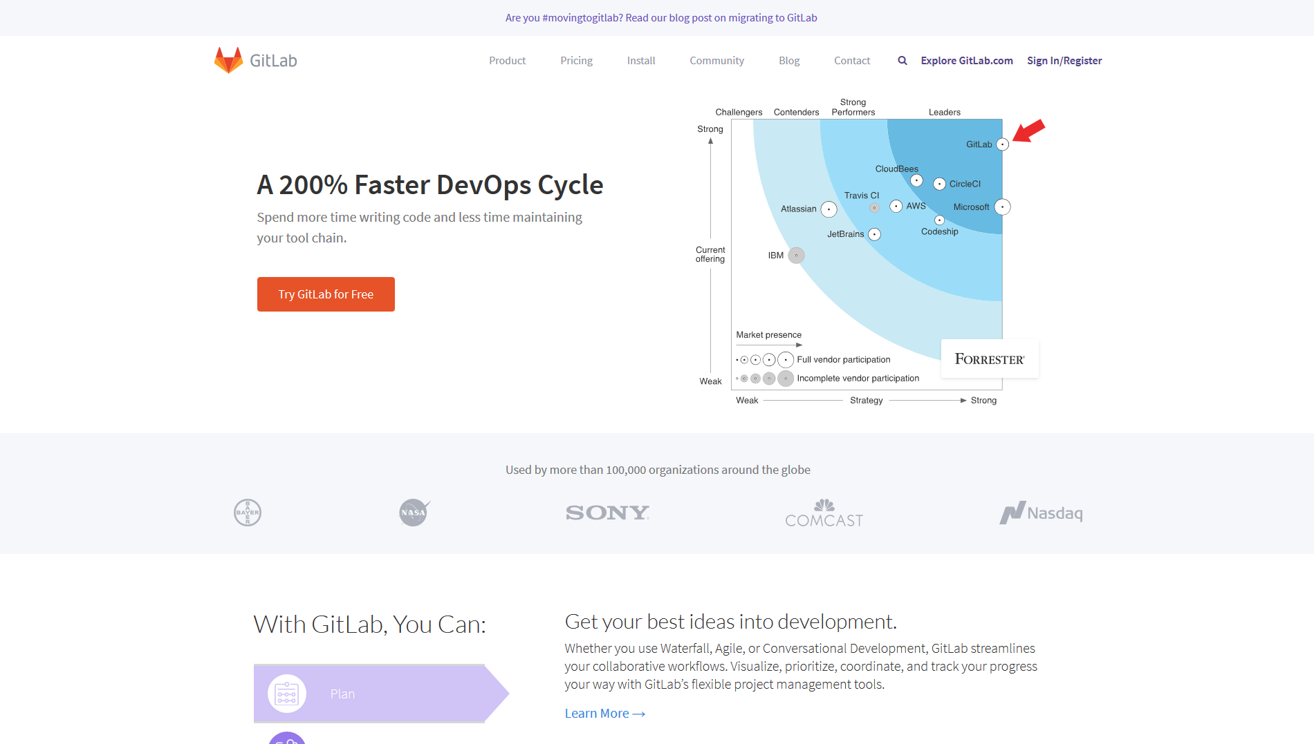 ผู้ให้บริการพื้นที่เก็บความเปลี่ยนของซอร์สโค้ดอีกราย GitLab โพสบนเว็บไซต์ตัวเอง ก่อนหน้านี้ก็โพสแสดงความยินดีต่อ GitHub ล่วงหน้า พร้อมกับเปลี่ยนหน้าแรกมาแสดงกราฟจาก Forrester Wave Leader 2017 ที่แสดงให้เห็นว่าตนเองเป็นผู้นำในตลาด "Continuous Integration Tools" อีกด้วย