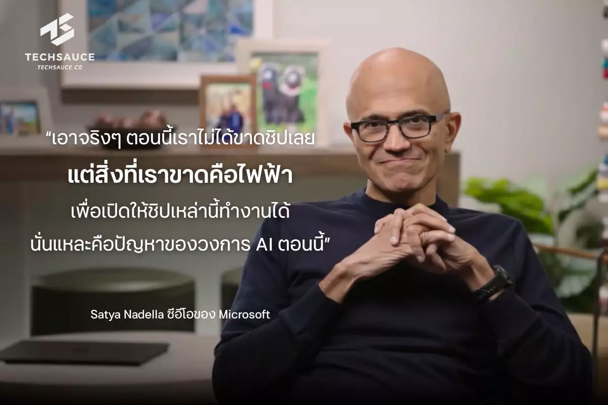 เมื่อพูดถึงปัญหาของวงการ AI หลายคนอาจนึกถึงการขาดแคลนชิป หรือ GPU ที่ใช้รันโมเดลขนาดใหญ่ แต่ล่าสุด Satya Nadella ซีอีโอของ Microsoft ออกมาเปิดเผยมุมมองใหม่ที่พลิกความเข้าใจของทั้งอุตสาหกรรม เขากล่าวว่า ปัญหาสำคัญในตอนนี้ไม่ใช่ชิปไม่พออีกต่อไป แต่คือพลังงานไม่พอ