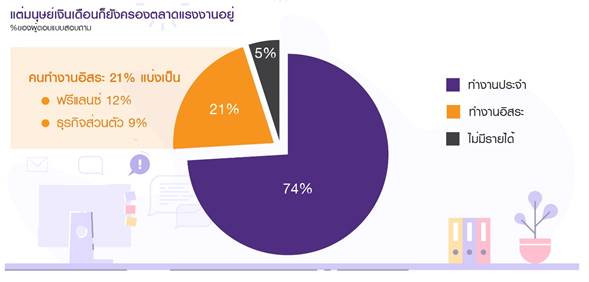 จากการสำรวจของอีไอซี เหตุผลส่วนใหญ่ที่คนเลือกทำงานประจำคือความมั่นคงด้านการงานและการเงิน (คือมีรายได้สม่ำเสมอ มีหน้าที่การงานรองรับตลอดเวลา) รองลงมาคือสวัสดิการ วันเวลาทำงานที่แน่นอน โอกาสเติบโต รวมถึงการมีสังคมในการทำงาน เมื่อเทียบกับงานฟรีแลนซ์ที่ยังมีความเสี่ยงจากความไม่แน่นอนทั้งเรื่องการงานและการเงิน ก็ไม่แปลกที่คนส่วนใหญ่จะเลือกอยู่กับงานประจำซึ่งให้ความอุ่นใจมากกว่า
