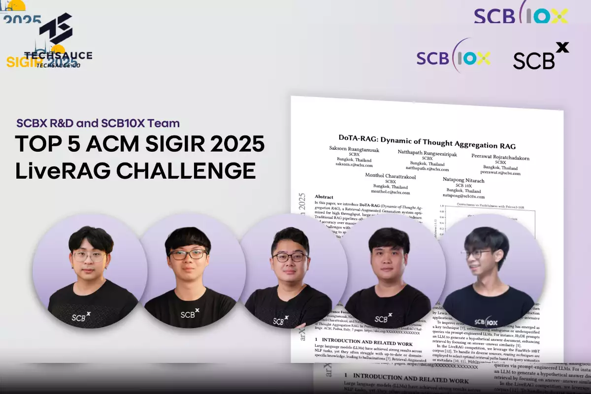 ถือเป็นข่าวดีในวงการเทคโนโลยีไทย เมื่อ SCBX ประกาศความสำเร็จครั้งสำคัญ โดยทีมวิจัยและวิศวกร AI จาก SCBX R&D and Innovation Lab และ SCB 10X สามารถคว้าอันดับ 5 จาก 40 ทีมทั่วโลก ในการแข่งขันพัฒนาระบบ Retrieval-Augmented Generation (RAG) ภายในงาน ACM SIGIR 2025 และเป็นทีมจากภาคอุตสาหกรรมที่ทำคะแนนได้สูงที่สุดในการแข่งขันครั้งนี้