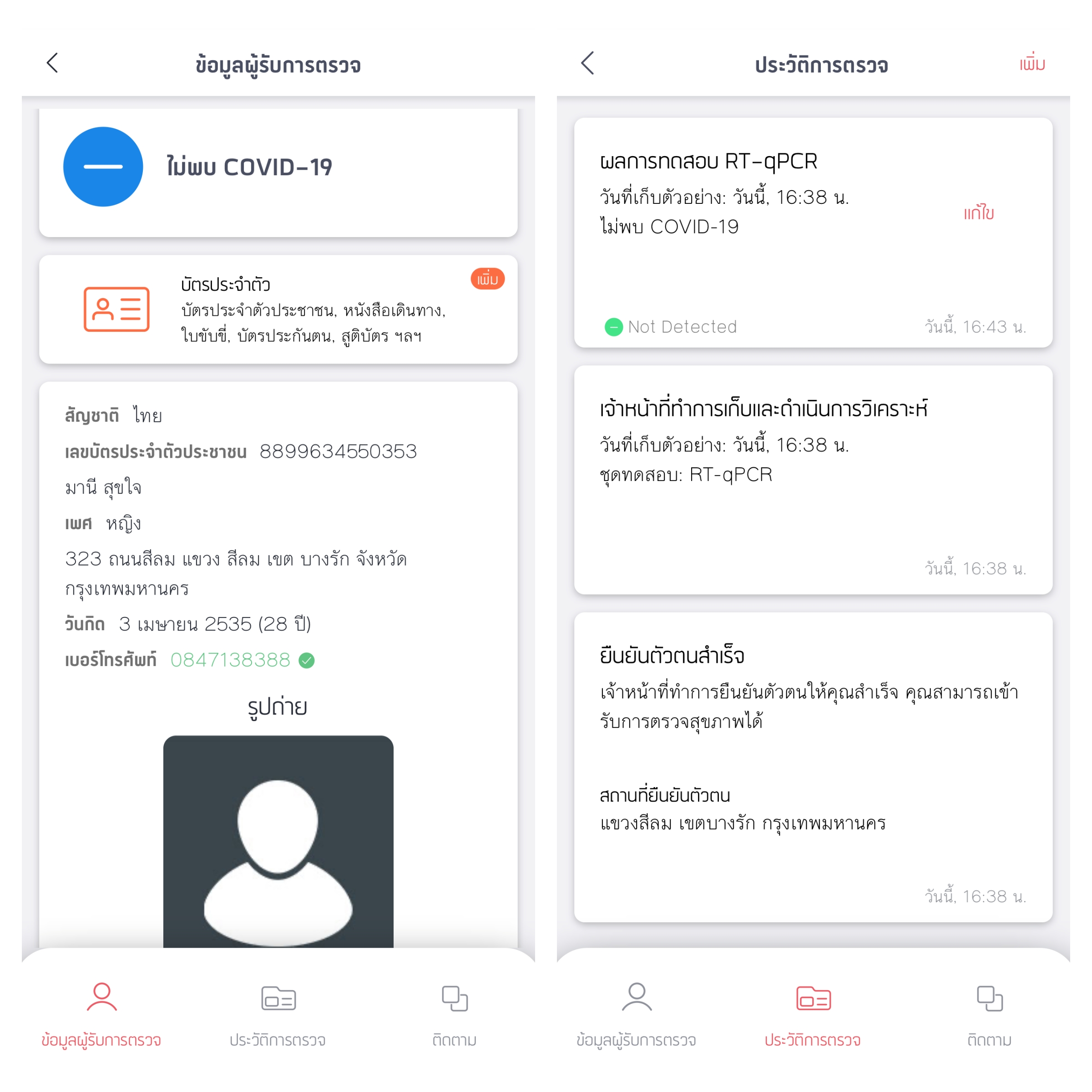 นอกจากนี้มีระบบ Tracking สำหรับเก็บข้อมูลการเดินทางของผู้ใช้ Application ทำให้ทราบการเดินทางของ ผู้เข้ารับการตรวจ เพื่อการติดตามหาผู้มีโอกาสสัมผัสโรคต่อไปในอนาคต