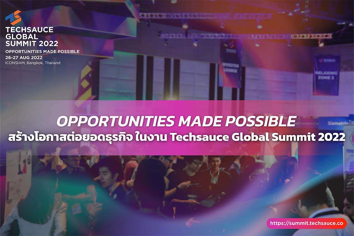 เราตั้งใจให้งาน Techsauce Global Summit ครั้งนี้ เป็นสะพานเชื่อมต่อโอกาสทางธุรกิจให้กับทุกท่านที่เข้าร่วมงาน โดยเปิดพื้นที่พบปะพูดคุยสำหรับผู้ที่สนใจในธุรกิจและเทคโนโลยี ให้คอธุรกิจและเทคมาพบกัน กับการรวมตัวธุรกิจชั้นนำของไทย โดยเฉพาะกลุ่มธุรกิจ Startup ที่ตั้งใจจะมาโชว์ของให้นักลงทุนระดับโลกดูกัน