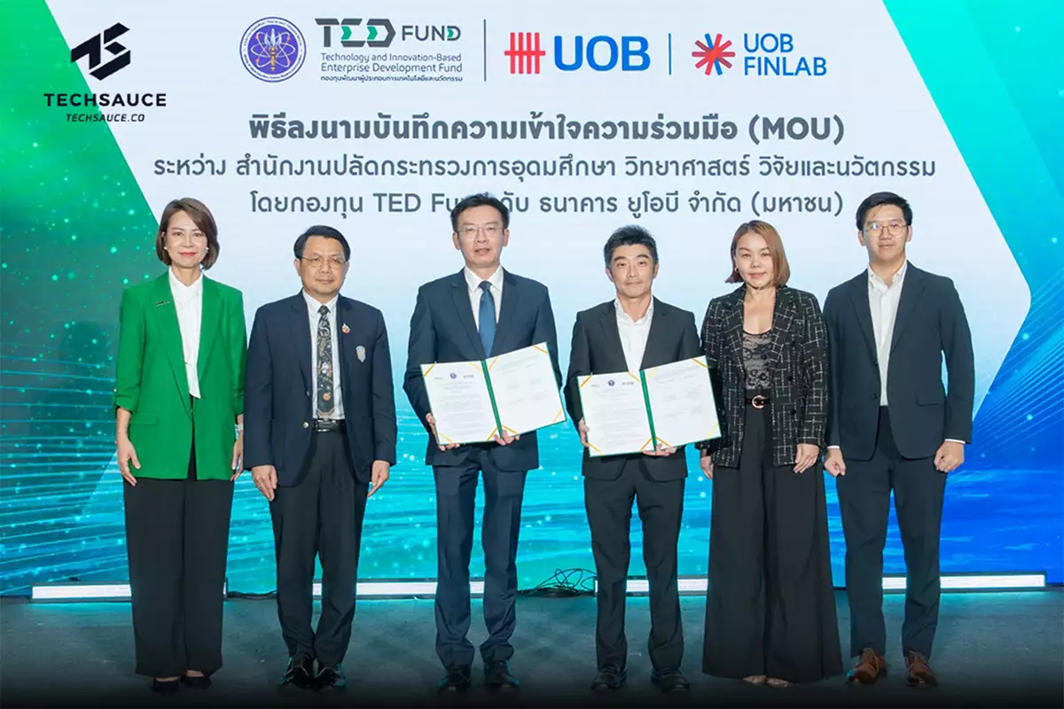 คุณบัลลังก์ ว่องธวัชชัย Head of Digital Engagement and Ecosystem Partnerships ธนาคารยูโอบี ประเทศไทย กล่าวว่า “UOB FinLab มีความยินดีที่ได้ร่วมเป็นพันธมิตรกับ TED Fund ในการสนับสนุนสตาร์ทอัพและธุรกิจเทคโนโลยีที่มีศักยภาพในการเติบโตให้สามารถเข้าถึงการให้คำปรึกษาทางด้านการเงินและกลยุทธ์ทางธุรกิจที่เฉพาะเจาะจงสำหรับอุตสาหกรรมต่างๆ โดยเฉพาะในด้าน New S-Curve จากผู้เชี่ยวชาญของธนาคารและพันธมิตร เรายังพร้อมที่จะช่วยเชื่อมสตาร์ทอัพกับพันธมิตรทางการค้า และสมาคมต่าง ๆ รวมถึงโอกาสในการขยายกิจการไปยังตลาดต่างประเทศ ผ่านเครือข่ายของ UOB ในภูมิภาคอาเซียน เช่น สิงคโปร์ มาเลเซีย อินโดนีเซีย เวียดนาม รวมถึงจีน เพื่อเพิ่มโอกาสในการเข้าถึงแหล่งทุนและการเติบโตอย่างยั่งยืน”