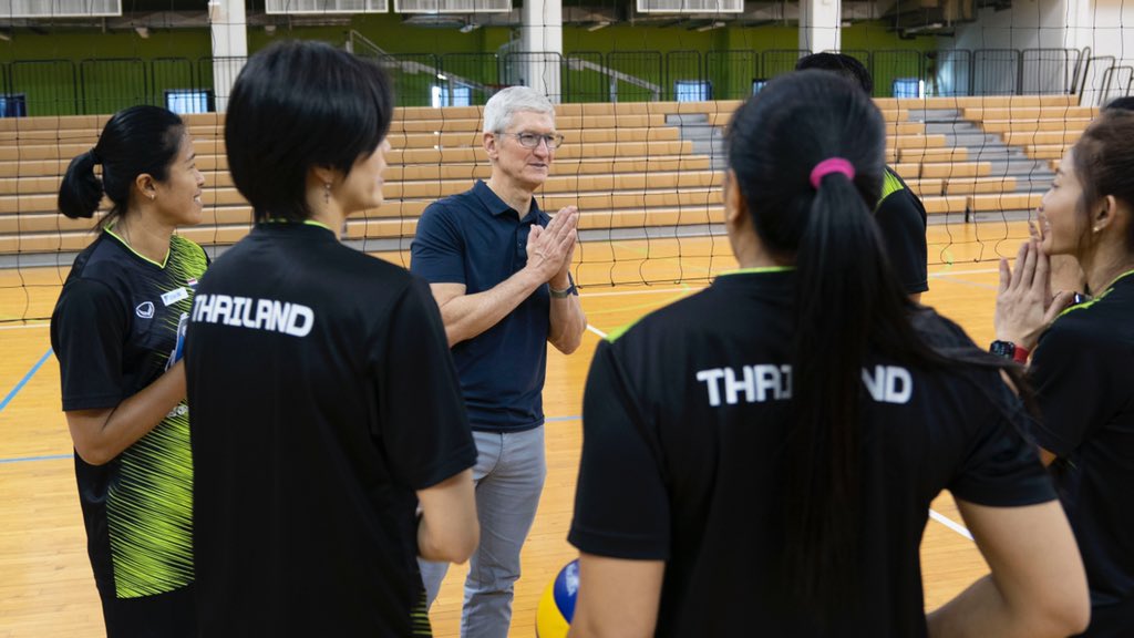 ‘Tim Cook’ CEO Apple เผยภาพเยือนประเทศไทย เริ่มต้นที่วัดอรุณ , โรงเรียนสาธิตจุฬา พร้อมเผยภาพพบกับนักกีฬาวอลเล่ย์บอลหญิงไทย ที่ Cook ยังได้แสดงความยินดีกับการได้เหรียญทองในซีเกมส์อีกด้วย
