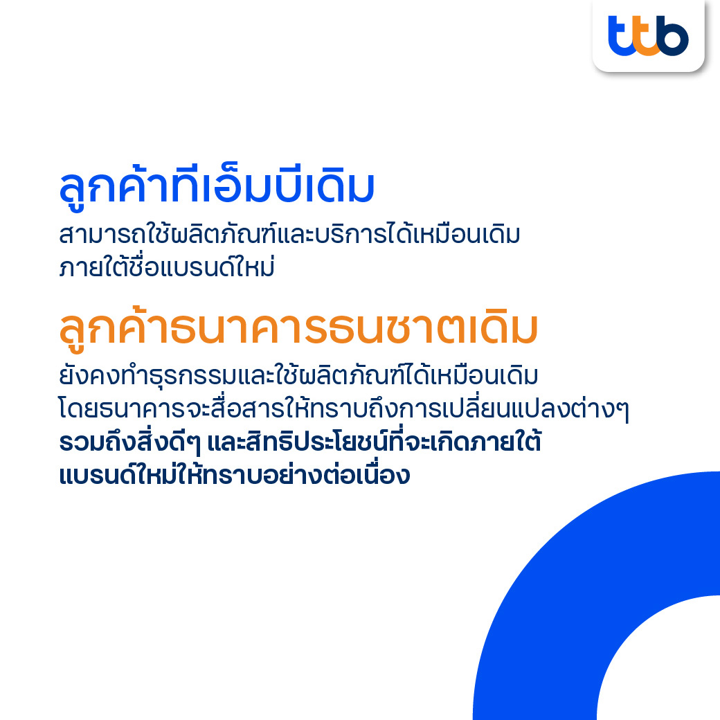 จากการประสานจุดแข็งของทีเอ็มบีและธนชาตที่ผนึกกำลังเป็นหนึ่งเดียวภายใต้ธนาคารใหม่ “ทีเอ็มบีธนชาต” หรือ ttb (ทีทีบี) ที่สื่อถึงสถาบันการเงินที่มีความมั่นคง คนไทยผูกพันมายาวนานและความไว้วางใจที่ลูกค้ามีให้กับทั้งสองธนาคาร พร้อมเดินหน้ามุ่งสร้างชีวิตการเงินที่ดีขึ้นให้กับคนไทยทั้งวันนี้และอนาคต ผ่าน Financial Well-being solution สร้างสรรค์ผลิตภัณฑ์และบริการทางการเงินที่ตอบโจทย์ทุกความต้องการและดีที่สุดสำหรับลูกค้าแต่ละคน ตลอดทุกช่วงชีวิต พร้อมช่วยลูกค้าฝ่าวิกฤต COVID-19 และเติบโตได้อย่างยั่งยืน โดยธนาคารได้เปิดแผนธุรกิจปีนี้ เร่งเครื่อง 3 เรื่องสำคัญ รุกขยายฐานลูกค้าที่เลือกใช้ธนาคารเป็นธนาคารหลัก เพิ่มศักยภาพช่องทางดิจิทัล สร้างสรรค์แพลตฟอร์มดิจิทัลที่เป็นมิตรและรู้ใจ พร้อมยกระดับทักษะพนักงานเพื่อสนับสนุนทิศทางการดำเนินงานของธนาคาร