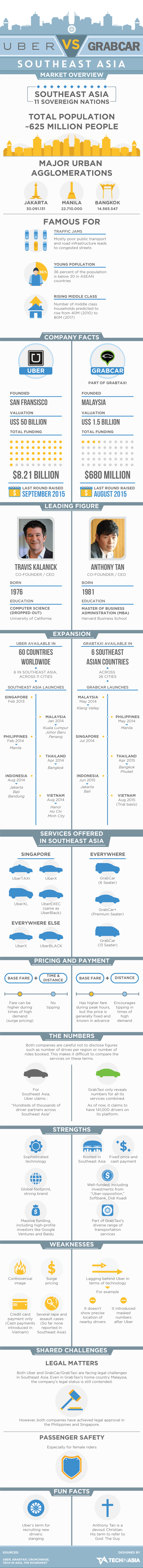 ถึงแม้ว่า Uber จะเข้ามาเจาะตลาดให้บริการรถยนต์ส่วนตัวก่อนที่ GrabTaxi จะเปิดตัว GrabCar ในภูมิภาคบ้านเรา อย่างไรก็ดี ด้วยฐานลูกค้าที่ GrabTaxi มีอยู่จำนวนมากในเอเชียตะวันออกเฉียงใต้ ทำให้พวกเขาอาจะแซงหน้า Uber ในไม่ช้านี้