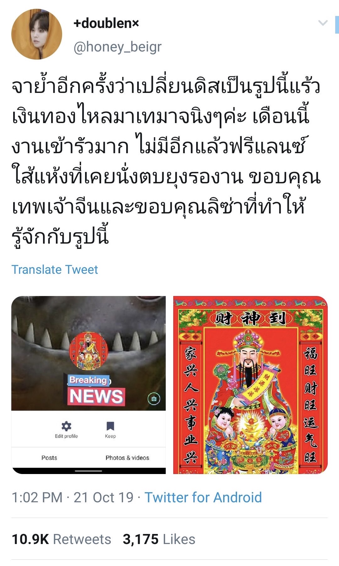 ทั้งนี้รูปเทพเจ้าไฉซิงเอี้ยเคยเป็นกระแสใน Twitter มาแล้ว เมื่อนักแสดงจีน ‘เซียวจ้าน’ เคยใช้รูปดังกล่าวเป็นหน้าจอมือถือมาก่อน โดยนอกจากมีการตั้งรูปเป็นหน้าจอมือถือแล้ว ใน Twitter ยังมีการจำหน่ายเคสมือถือรูปเทพเจ้าอีกด้วย ทั้งหมดก็เป็นเรื่องราวความเชื่อที่กำลังเป็นไวรัลในขณะนี้ ใครใช้ภาพหน้าจอตามบ้างแล้วเป็นอย่างไร มาอัพเดทกันได้ค่ะ