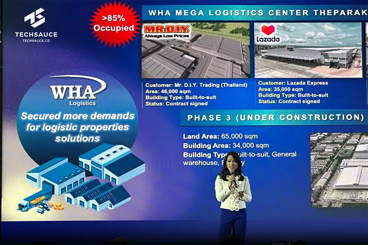ธุรกิจโลจิสติกส์ ยังคงขยายตัวต่อเนื่อง ครึ่งปีแรกมีสัญญาพื้นที่ให้เช่าใหม่และสัญญาเช่าใหม่รวมกว่า 123,000 ตารางเมตร มูลค่า 2,153 ล้านบาท โดยมูลค่าต่อตารางเมตรสูงกว่าปีก่อน สะท้อนความต้องการพื้นที่คุณภาพ ล่าสุดเปิดโครงการ WHA Mega Logistics Center ชลหารพิจิตร กม.4 โปรเจกต์ 2 พื้นที่รวม 300,000 ตารางเมตร โดยมี บริษัท ดับบลิวเอชเอ จีซี โลจิสติกส์ จำกัด (WGCL) เป็นลูกค้ารายแรกเช่าพื้นที่ 22,000 ตารางเมตร พร้อมขยายการลงทุนในเวียดนาม โดยโครงการในจังหวัดฮึงเอียน (Hung Yen) แล้วเสร็จตามแผน และอยู่ระหว่างศึกษาพัฒนาแห่งใหม่ที่จังหวัดทัญฮว้า (Thanh Hoa) ส่งผลให้ปีนี้บริษัทจะมีพื้นที่ภายใต้การบริหารรวมกว่า 3,213,000 ตารางเมตร โดยมีเป้าปล่อยเช่าใหม่ 200,000 ตารางเมตร และแผนขายทรัพย์สินให้กองทรัสต์ WHART ประมาณ 70,000 ตารางเมตร มูลค่า 1,500 ล้านบาท