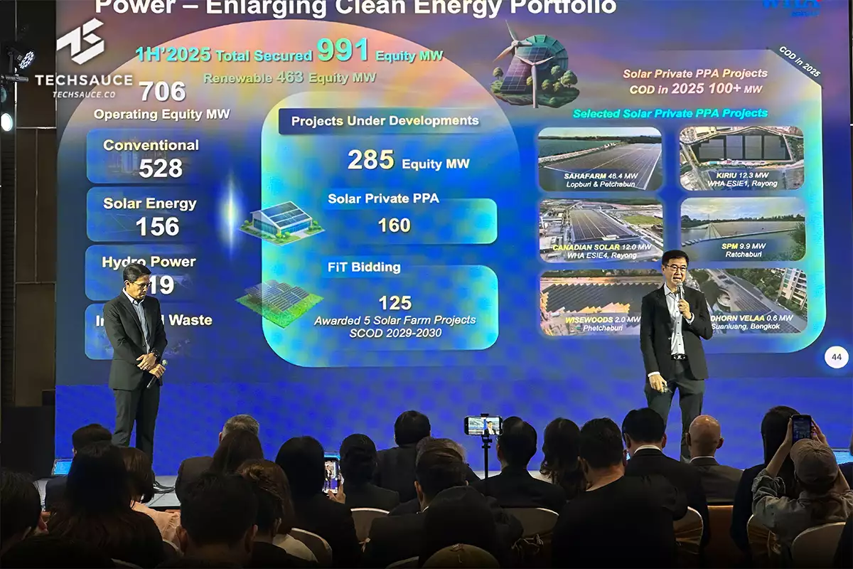 ธุรกิจไฟฟ้า เดินหน้าพัฒนาพลังงานหมุนเวียน โดยครึ่งปีแรกมีกำลังการผลิตตามสัญญา (PPA) รวม 991 เมกะวัตต์ ในจำนวนนี้เป็นพลังงานหมุนเวียน 463 เมกะวัตต์ โดยมีโครงการโซลาร์ที่ COD แล้ว 156 เมกะวัตต์ อยู่ระหว่างพัฒนาอีก 285 เมกะวัตต์ ตั้งเป้าสิ้นปีเพิ่มเป็น 1,185 เมกะวัตต์ นอกจากนี้ยังเดินหน้าพัฒนาแพลตฟอร์ม RENEX ซื้อขายพลังงานสะอาดแบบ Peer-to-Peer และบริการใบรับรองพลังงานหมุนเวียน (REC) เพื่อตอบโจทย์ความยั่งยืนของลูกค้า อีกทั้งพร้อมเตรียมรองรับความต้องการพลังงานสะอาดในปริมาณมากของ Data Center