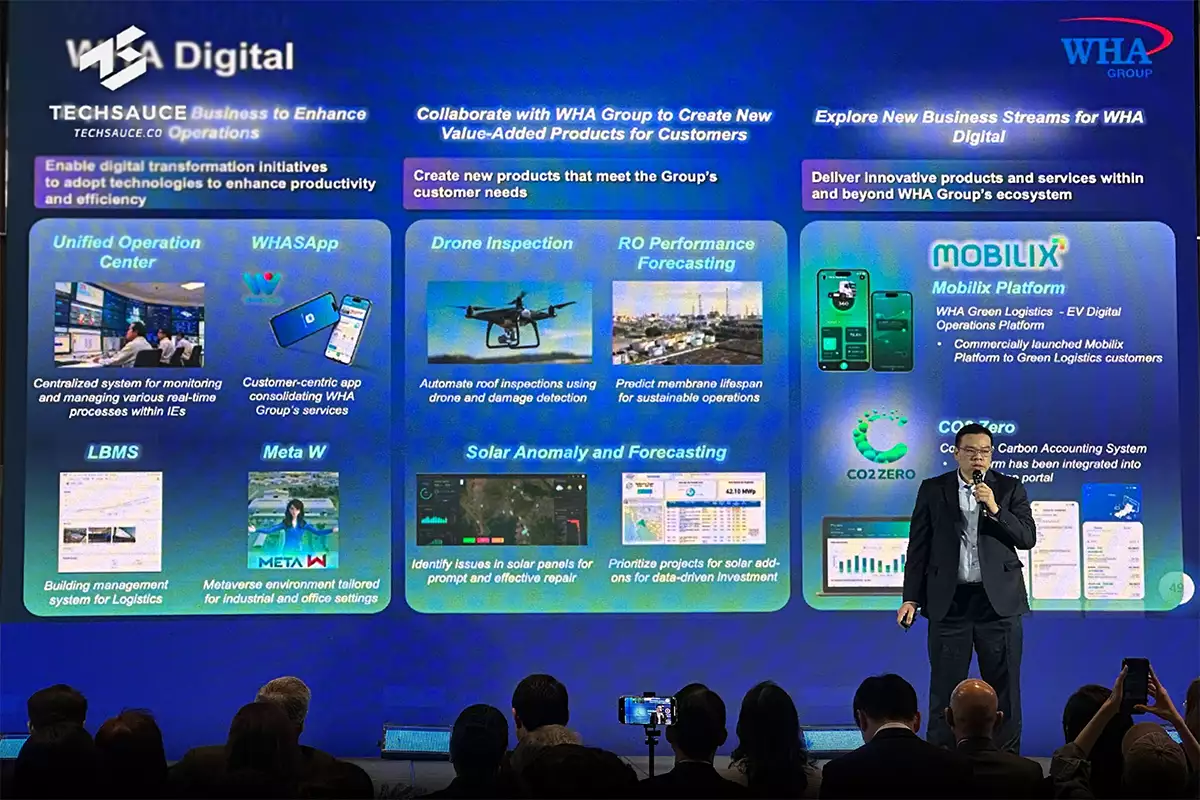 ธุรกิจดิจิทัล เพิ่มบทบาทสำคัญในการเสริมศักยภาพกลุ่มธุรกิจ ผ่านการนำเทคโนโลยีและนวัตกรรม เช่น AI และ IoT โดยมีโครงการ AI Transformation กว่า 12 โครงการ เช่น Drone Inspection Solution และ IoX Platform for Solar พร้อมพัฒนาแพลตฟอร์ม Mobilix Software Solution และแอปพลิเคชัน WHASApp ซึ่งมีผู้ใช้งานแล้วกว่า 1,500 ราย และล่าสุดได้เพิ่มฟีเจอร์ CO2 ZERO สำหรับรายงานคาร์บอนฟุตพริ้นท์ตามมาตรฐาน