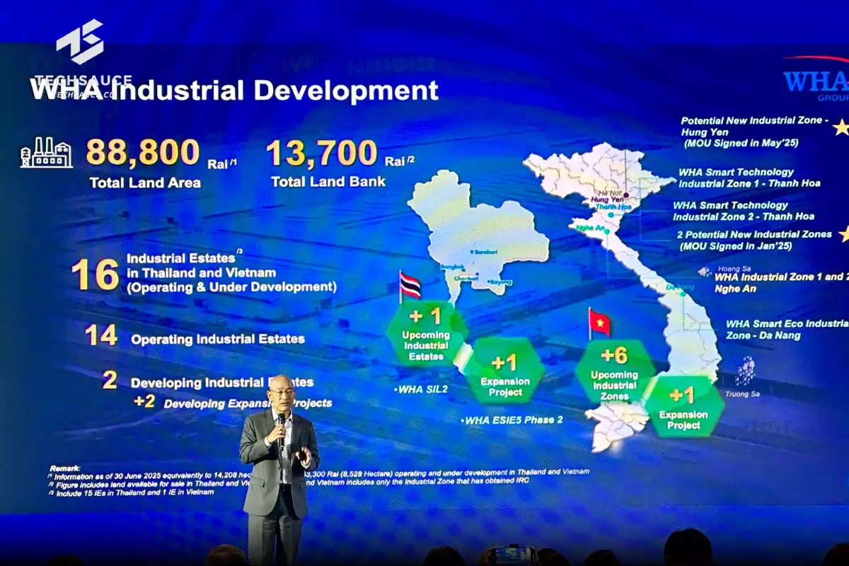 นอกจากนี้ เขตพัฒนาพิเศษภาคตะวันออก (EEC) ยังคงเป็นศูนย์กลางของการลงทุน ซึ่งคิดเป็น 61% ของการขอรับการส่งเสริมการลงทุนทั้งหมด ซึ่งสอดคล้องกับฐานธุรกิจหลักของ WHA Group ที่ครอบคลุมโลจิสติกส์ นิคมอุตสาหกรรม สาธารณูปโภคและพลังงาน ดิจิทัล และโมบิลิตี้ โดยเฉพาะการเป็นผู้นำด้านนิคมอุตสาหกรรมที่ครึ่งปีแรกสามารถทำยอดขายที่ดินได้ 1,105 ไร่ และโอนกรรมสิทธิ์แล้ว 1,143 ไร่ พร้อม Backlog รอโอน 1,467 ไร่ มูลค่า 7,695 ล้านบาท และ มี หนังสือแสดงเจตจำนง (LOI) / บันทึกแสดงความเข้าใจ (MOU) อีก 1,427 ไร่ มูลค่ารวมกว่า 8,000 ล้านบาท จากลูกค้าหลากหลายอุตสาหกรรม ทั้งอิเล็กทรอนิกส์ ยานยนต์ และ Data Center