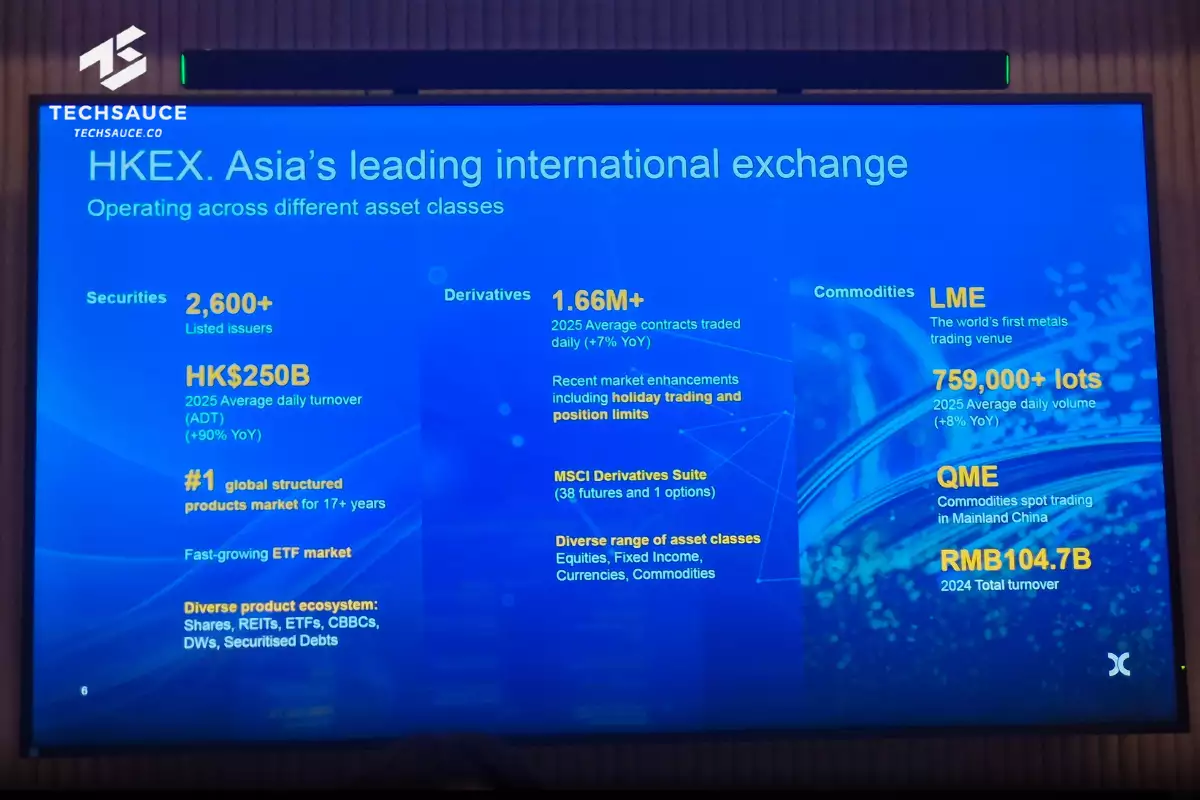 จากข้อมูลของ HKEX ณ สิ้นปี 2025 ฮ่องกงมีบริษัทจดทะเบียนมากกว่า 2,600 แห่ง มูลค่าตลาดรวมอยู่ที่ราว HK$520B และมีมูลค่าการซื้อขายเฉลี่ยต่อวันในปี 2025 ราว HK$250B เพิ่มขึ้น 90% จากปีก่อน