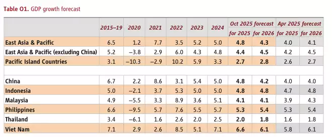 รายงานฉบับล่าสุด East Asia and Pacific Economic Update ประจำเดือนตุลาคม 2568 จากธนาคารโลก (World Bank) ได้ฉายภาพอนาคตเศรษฐกิจของภูมิภาคเอเชียตะวันออกและแปซิฟิก (EAP)