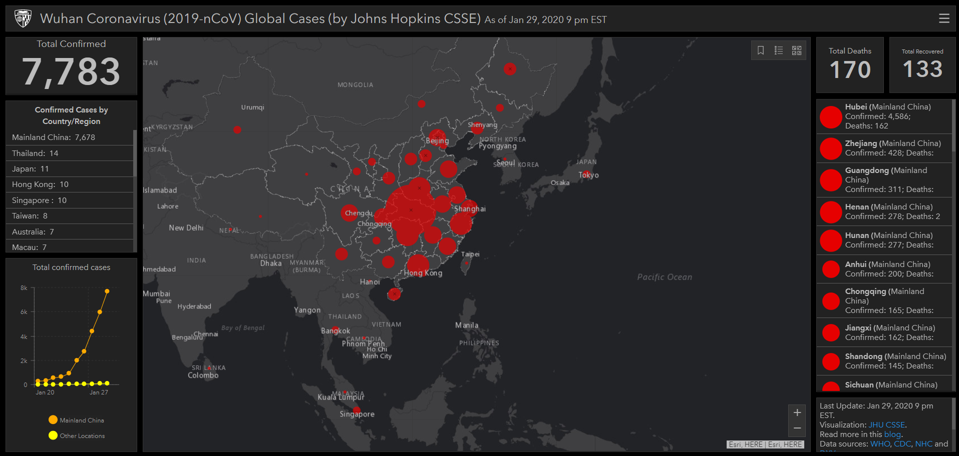 จากสถานการณ์ 'ไวรัสโคโรน่า' ที่แพร่กระจายไปทั่วโลก Online Dashboard สามารถช่วยให้คุณติดตามข่าวสารได้ เครื่องมือนี้ได้รับการพัฒนาโดยศูนย์วิทยาศาสตร์และวิศวกรรมเทคโนโลยีได้สร้างระบบที่สามารถรวบรวมและดึงข้อมูลจากองค์การอนามัยโลกได้ เช่นเดียวกับศูนย์ควบคุมโรคในสหรัฐอเมริกาจีนและยุโรป ที่สามารถแสดงให้เห็นว่า 'ไวรัสโคโรน่า' ทั้งหมดได้รับการยืนยันผู้ต้องสงสัยว่าติดเชื้อกี่รายและหายจากโรคแล้วเท่าไร รวมถึงอัตราการเสียชีวิตแบบเรียลไทม์