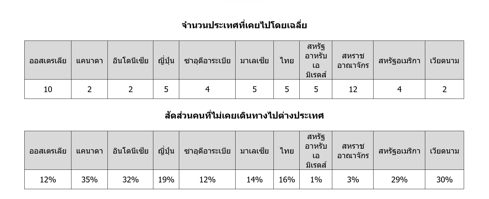 ขณะเดียวกัน แบบสำรวจยังพบว่า ผู้ตอบแบบสอบถามจำนวน 18% ไม่เคยเดินทางไปต่างประเทศ โดยคนอายุมากกว่า 55 ปี จำนวนถึง 13% ไม่เคยเดินทางไปต่างประเทศเลย