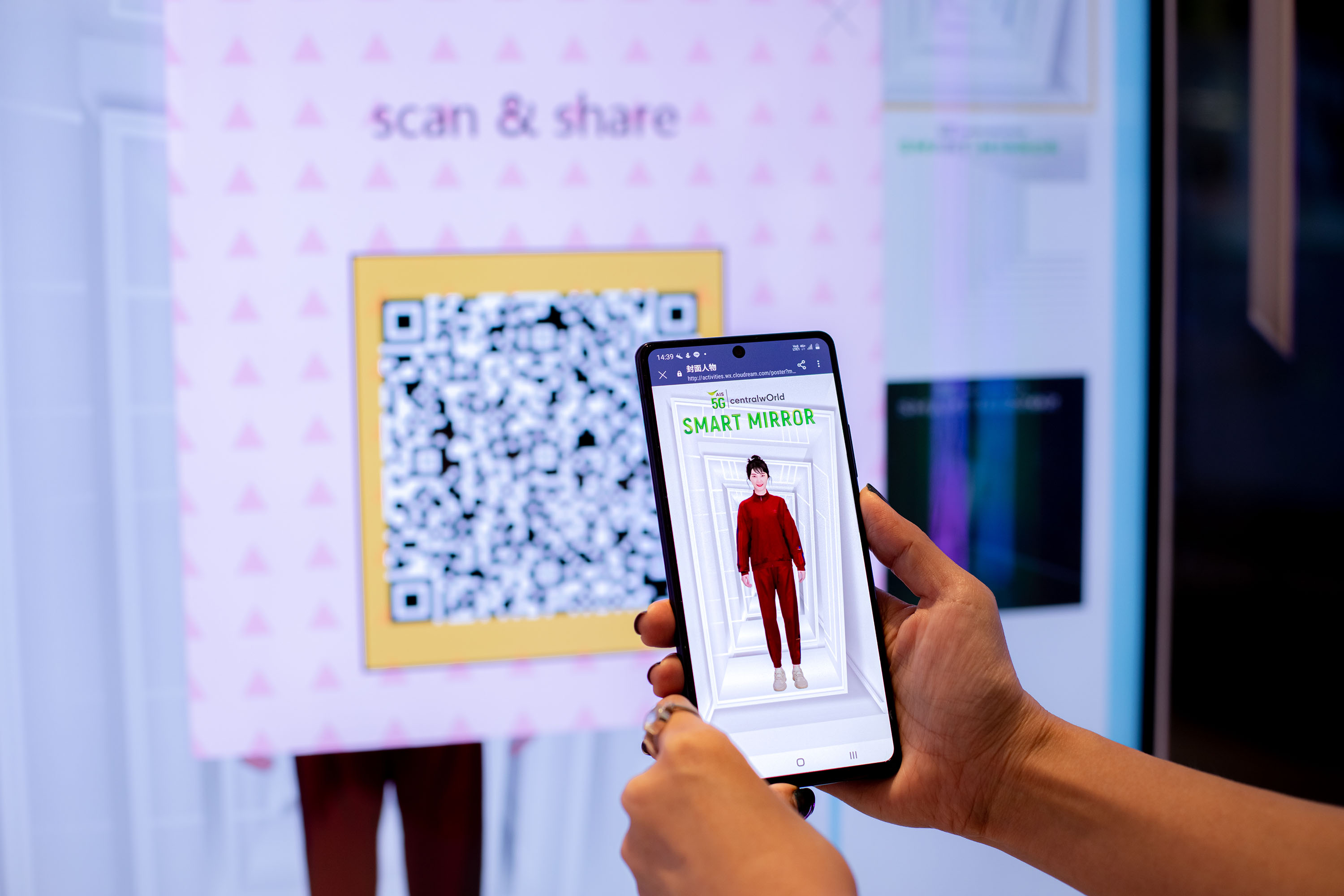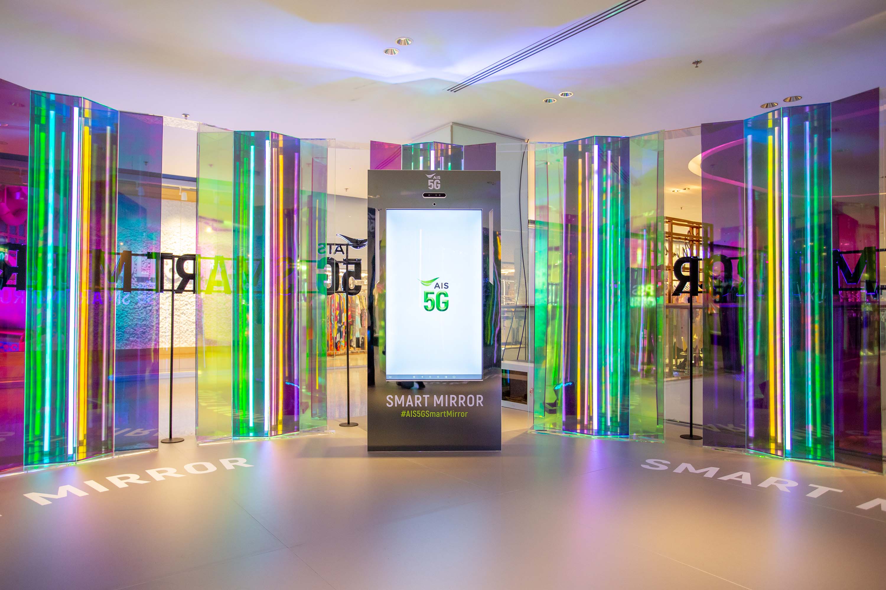 โดยในครั้งนี้ได้นำ AIS 5G SMART MIRROR หรือกระจกอัจฉริยะที่เป็นดั่งผู้ช่วยในการแต่งตัว ที่ทำงานบนเครือข่าย AIS 5G ซึ่งมีพลานุภาพสูง ทั้งในแง่ของอินเทอร์เน็ตความเร็วสูง (Speed) การตอบสนองต่อการสั่งงานที่รวดเร็ว มีความหน่วงต่ำ (Latency) พร้อมรองรับการเชื่อมต่ออุปกรณ์ IoT ที่หลากหลาย (IoT Connectivity) เข้าไปพลิกโฉมประสบการณ์การช้อปปิ้งของลูกค้าในยุค 5G ให้สนุกและตื่นเต้นกว่าที่เคย