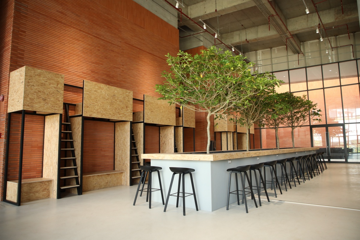เฟอร์นิเจอร์ที่นำมาใช้เป็นงานรีไซเคิลจากวัสดุทางธรรมชาติ ไม่ว่าจะเป็นฟางข้าว, ไม้ยางพาราที่ตายแล้ว, กล่องเครื่องดื่ม หรือแม้แต่เศษเหล็กที่เหลือจากการพิมพ์อุปกรณ์ก็ถูกรียูสเป็นชิ้นงานตกแต่งพื้นที่ นอกจากนี้ ยังจัดพื้นที่ Open Space มีโซนปฎิบัติการต่างๆ เช่น Demonstration Space, Makerspaces, Co-Working Space, Event Space และ Meeting room เพื่อเอื้อให้เกิดการลงมือทำและสร้างการมีส่วนร่วมจากทุกคน โดยมี Network Infrastructure และเครื่องมืออุปกรณ์ต่างๆ เช่น 3D Printing, อุปกรณ์เครื่องไม้,เครื่องมือไฟฟ้า และอื่นๆ อีกมากมายคอยอำนวยความสะดวก
