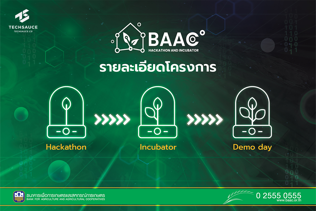 ศึกษารายละเอียดและสมัครเข้าร่วมโครงการ “BAAC Hackathon and Incubator, Agricultural Revolution หรือ ปฏิวัติเกษตรกรรมไทยให้เติบโตอย่างยั่งยืน” ได้ที่ https://www.hubbathailand.com/baac-incubator
