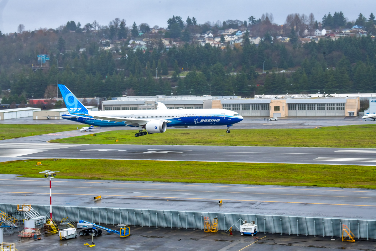 หนึ่งในสี่ของเครื่องบินที่ทดสอบการบินรุ่น 777-9 คือ WH001 ขณะนี้จะได้รับการตรวจสอบก่อนการกลับเข้าสู่การทดสอบในเร็ว ๆ นี้ กองบินทดสอบซึ่งเริ่มการทดสอบบนภาคพื้นดินในเอเวอเร็ตต์เมื่อปีก่อน จะยังคงอยู่กับชุดของการทดสอบที่เข้มงวด และสภาพบนพื้นดินและบนอากาศในช่วงอีกหลายเดือนต่อจากนี้เพื่อแสดงให้เห็นถึงความปลอดภัยและความน่าเชื่อถือของการออกแบบ