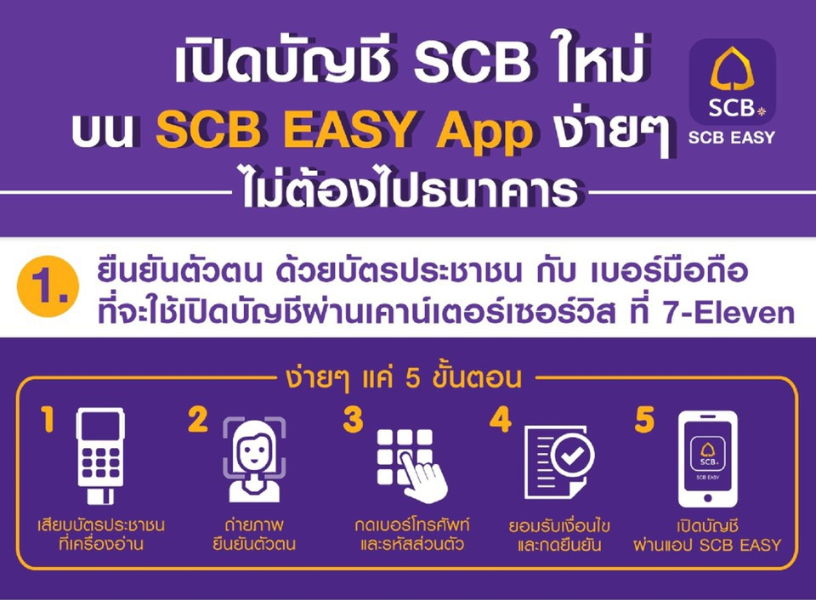 • พิเศษ! ใช้บริการ “ยืนยันตัวตนผ่านเคาน์เตอร์เซอร์วิส” ในร้านเซเว่นอีเลฟเว่น เพื่อเปิดบัญชีไทยพาณิชย์ รับดอกเบี้ยสูงสุด 1.5% พร้อมรับฟรี คูปองเงินสดสูงสุด 30 บาท สำหรับซื้อสิ้นค้าในร้านเซเว่นอีเลฟเว่นที่ร่วมรายการ