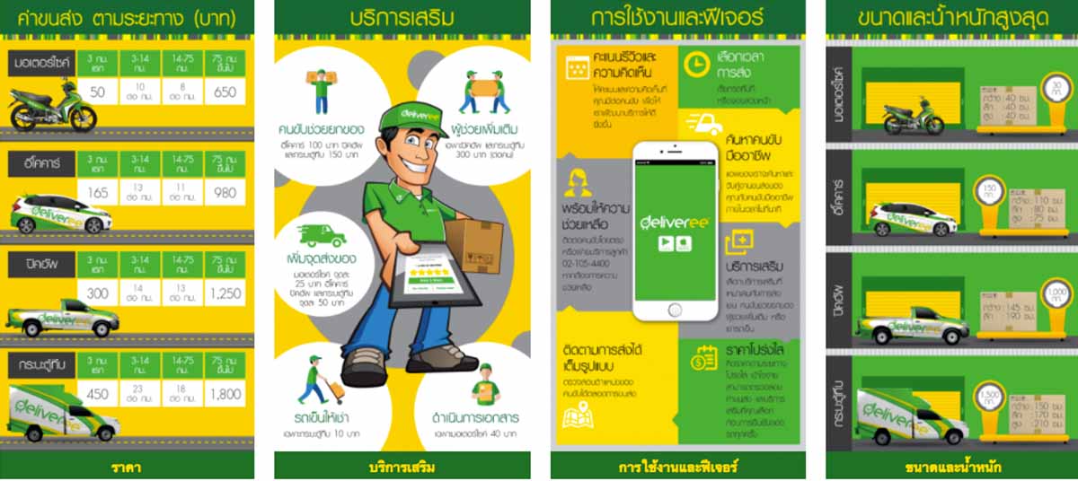 ที่ผ่านมา Deliveree มีสัดส่วนการให้บริการกลุ่มยานพาหนะแบบประหยัดอยู่ที่ 55% กลุ่มรถกระบะ 45% ซึ่งการให้บริการที่มีความยืดหยุ่น มีรถให้เลือกตามประเภทและลักษณะสินค้าที่ต้องการขนส่งจึงตอบโจทย์ลูกค้าได้อย่างหลากหลาย โดยลูกค้าส่วนมากที่นิยมใช้บริการรถกระบะของ Deliveree มักจะใช้ขนส่งสินค้าเพื่อออกบูธ ออกอีเวนต์ เช่น กลุ่มธุรกิจอาหารและเครื่องดื่มที่ใช้บริการรถซึ่งช่วยคงคุณภาพความสดใหม่ของอาหารและเบเกอรี แม่ค้าออนไลน์ที่ใช้บริการรถมอเตอร์ไซค์เพื่อส่งสินค้าให้แก่ลูกค้าภายในหนึ่งวัน และหากต้องการการจัดส่งแบบเฉพาะกิจ เพิ่มจุดส่งของ ให้คนขับช่วยคนของ เพิ่มผู้ช่วยขนของ หรือการขนของที่มีความต้องการซับซ้อนมากขึ้นก็ใช้บริการได้เช่นกัน