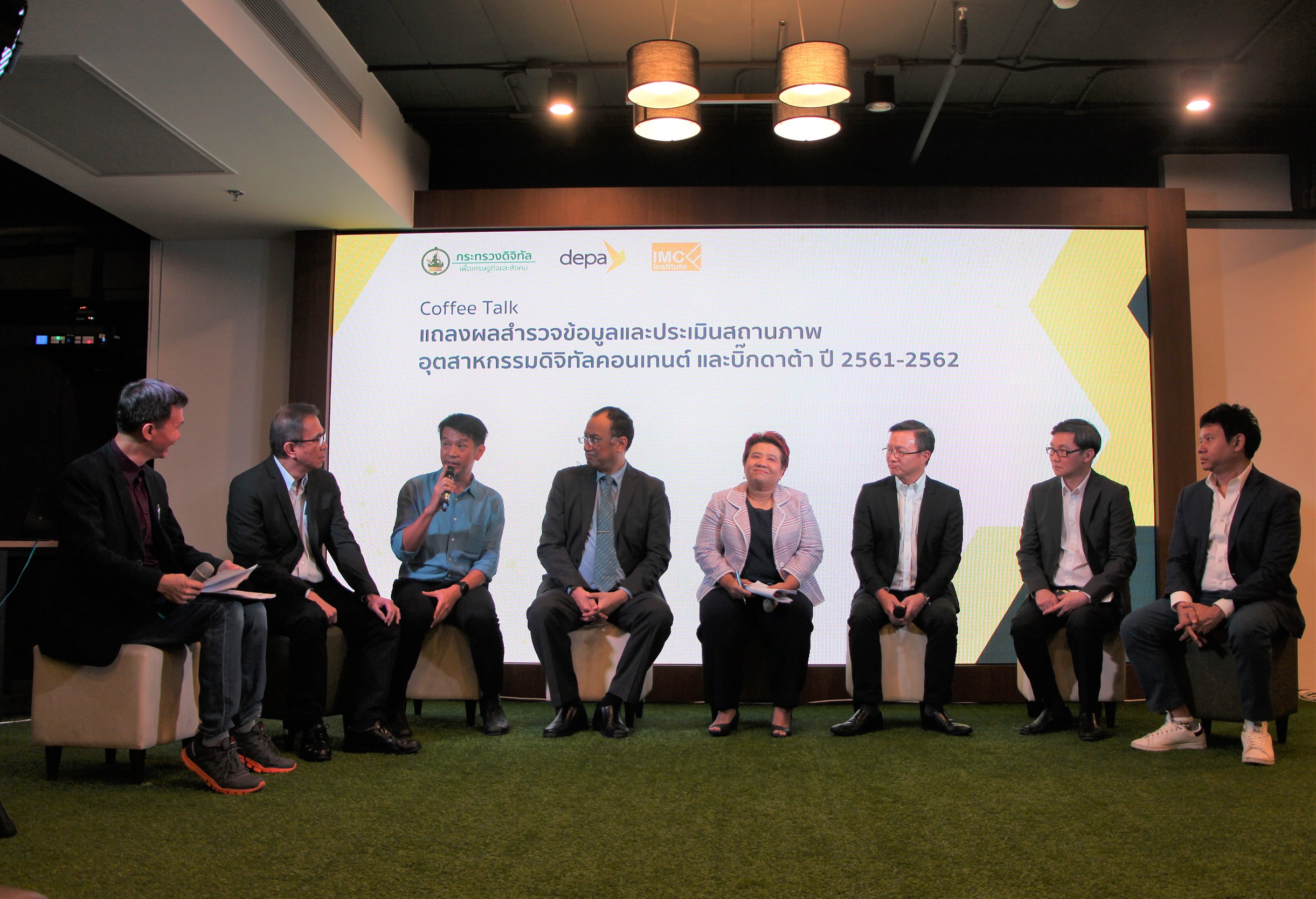 ดร.กษิติธร ภูภราดัย รองผู้อำนวยการใหญ่ (กลุ่มยุทธศาสตร์และบริหาร) สำนักงานส่งเสริมเศรษฐกิจดิจิทัล หรือ ดีป้า และสถาบันไอเอ็มซี เปิดเผยในงานแถลงผลสำรวจข้อมูลและประเมินสถานภาพอุตสาหกรรมดิจิทัลคอนเทนต์ และบิ๊กดาต้าปี 2561-2562 ที่จัดร่วมกับสมาคมดิจิทัลคอนเทนต์ไทย (DCAT) สมาคมผู้ประกอบการแอนิเมชันและคอมพิวเตอร์กราฟฟิกส์ไทย (TACGA) สมาคมอุตสาหกรรมซอฟต์แวร์เกมไทย (TGA) และสมาคมธุรกิจบางกอกเอซีเอ็มซิกกราฟ (Bangkok ACM SIGGRAPH) เผยผลสำรวจมูลค่าดิจิทัลคอนเทนต์ และบิ๊กดาต้าของปี 2561-2562 ในประเทศไทย โดยครอบคลุมสามสาขาหลักได้แก่ อุตสาหกรรมแอนิเมชัน อุตสาหกรรมเกม และอุตสาหกรรมคาแรคเตอร์ และบิ๊กดาต้า ว่า ภาพรวมอุตสาหกรรมดิจิทัลคอนเทนท์ไทยปี 2562 มีอัตราการเติบโตเฉลี่ย 11.51% คิดเป็นมูลค่าอุตสาหกรรม 31,080 ล้านบาท สูงขึ้นกว่าปี 2561 ที่ 27,873 ล้านบาท และ 25,040 ล้านบาทในปี 2560