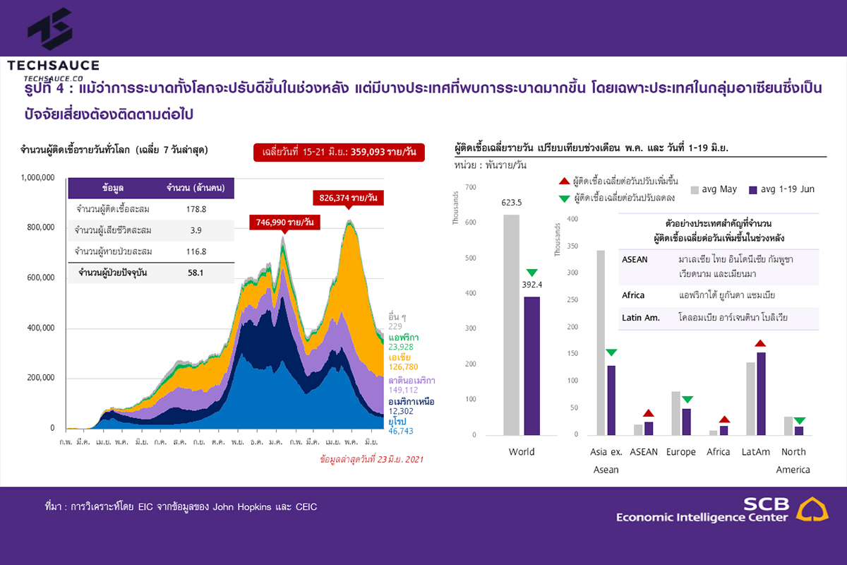 แม้ว่าการระบาดทั้งโลกจะปรับดีขึ้นในช่วงหลัง แต่มีบางประเทศที่พบการระบาดมากขึ้น โดยเฉพาะประเทศในกลุ่มอาเซียนซึ่งเป็นปัจจัยเสี่ยงต้องติดตามต่อไป