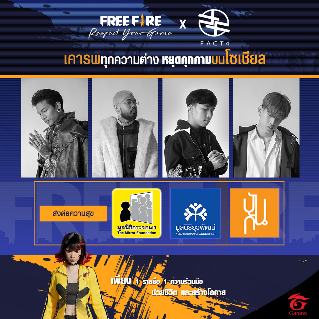 Garena Free Fire ต่อยอดโครงการ “Garena Free Fire: Respect Your Game” มุ่งส่งเสริมการเคารพความแตกต่าง พร้อมหยุดการแกล้งกันบนโลกออนไลน์ (Cyberbullying) ผ่านการเปิดตัวแพลตฟอร์ม (https://respect.freefire.in.th/) กระตุ้นให้ชาวเน็ตร่วมเป็นส่วนหนึ่งของการสร้างสังคมออนไลน์คุณภาพ