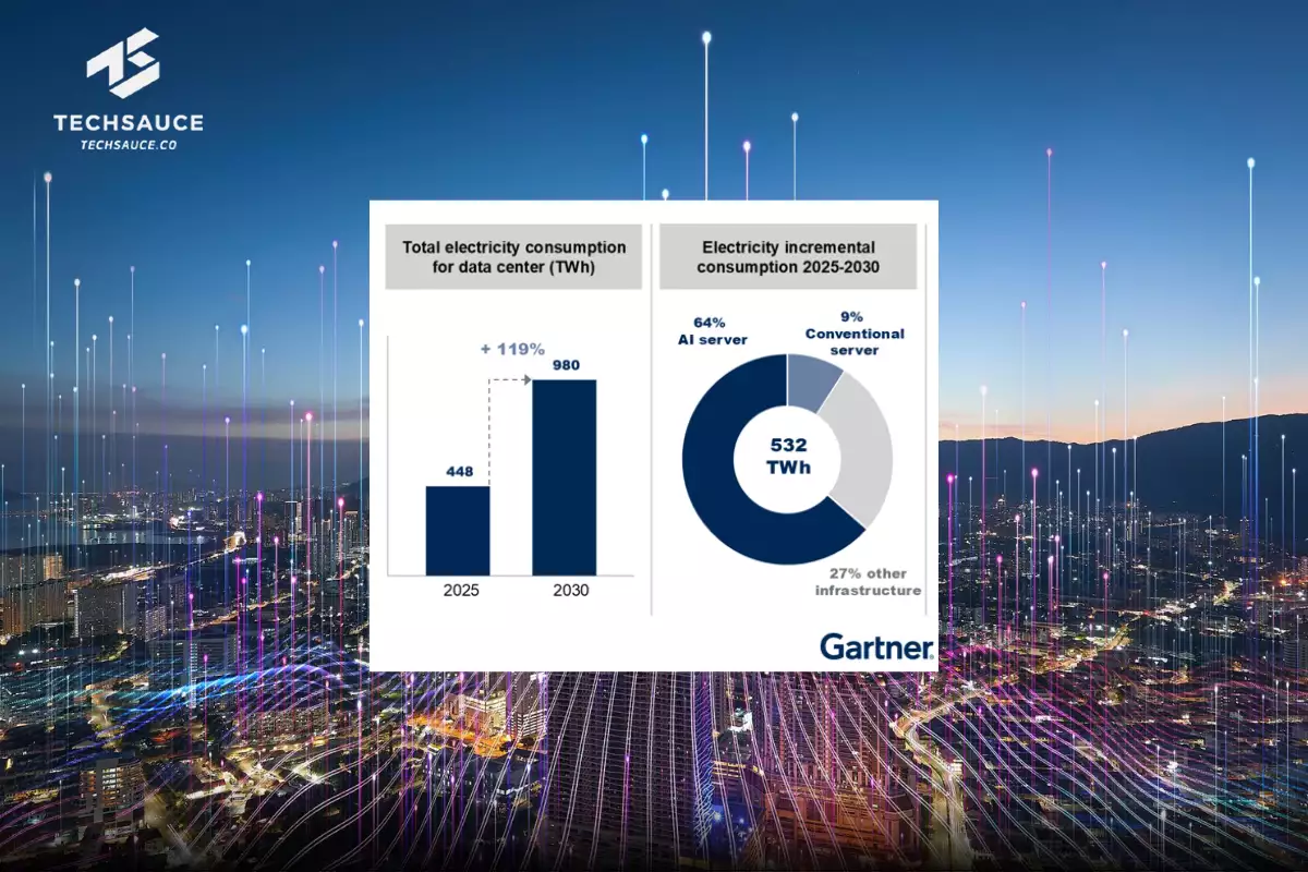 โดยนักวิเคราะห์การ์ทเนอร์ประเมินว่า การใช้ไฟฟ้าของดาต้าเซ็นเตอร์ทั่วโลกจะเพิ่มจาก 448 เทราวัตต์-ชั่วโมง (TWh) ในปี 2568 เป็น 980 TWh ภายในปี 2573